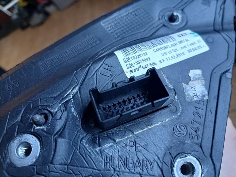 SPRZEDAM LUSTERKO LEWE 9-CIO PINOWE W KOLORZE Z22C WERSJA EUROPEJSKA O OZNACZENIU 13320192 DO SAMOCHODU OPEL INSIGNIA A.