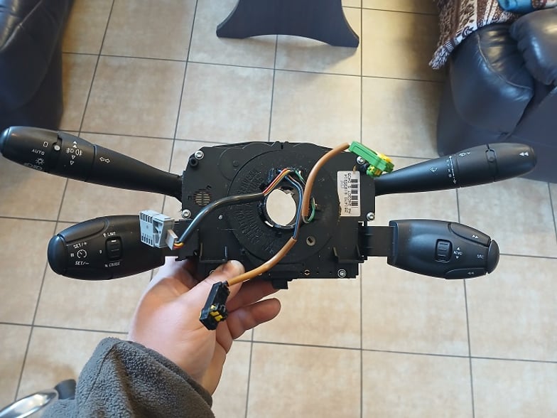 Sprzedam kompletny przełącznik zespolony manetki+taśma+tempomat+sterowanie radiem o oznaczeniu 96630719XT do samochodu PEUGEOT 207CC.