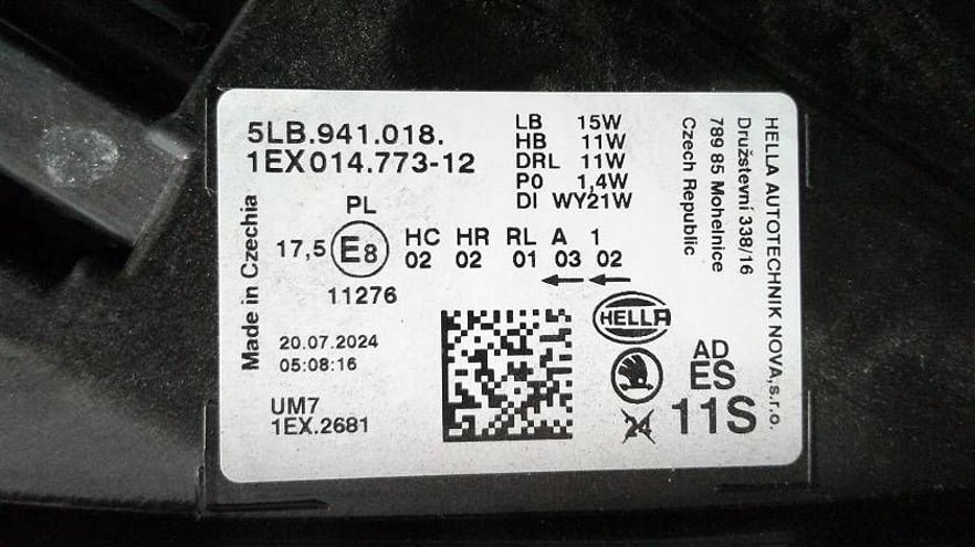 SKODA ENYAQ LAMPA PRZÓD PRAWA 5LB941018