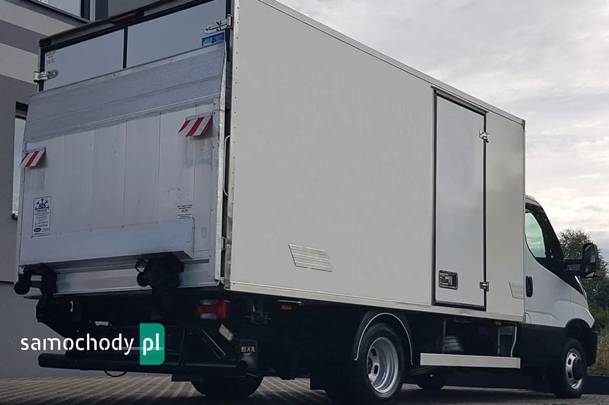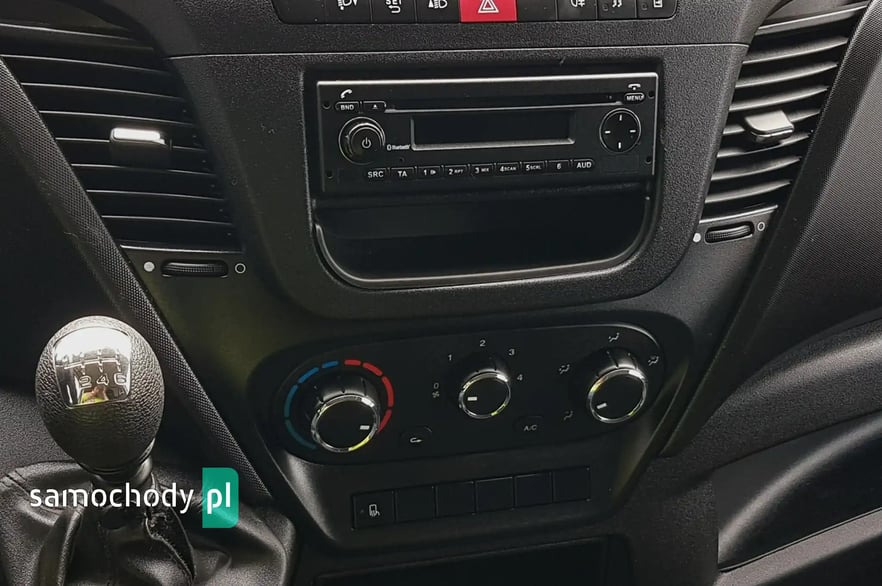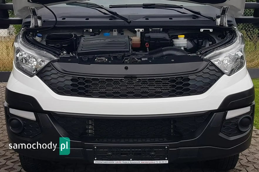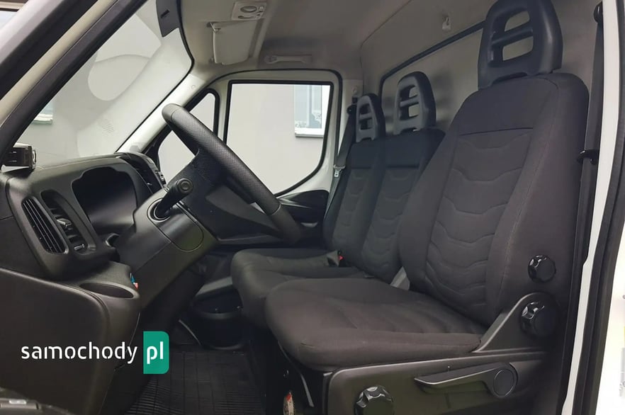 Klimatyzacja. Wspomaganie kierownicy. Centralny zamek. Immobilizer. Komputer pokładowy. Poduszka powietrzna kierowcy. ABS. ASR. Elektryczne lusterka. Elektryczne szyby. Podgrzewane lusterka. System kontroli trakcji. Oryginalne radio Iveco CD USB Aux + Bluetooth. Wielofunkcyjna kierownica. Zegarek. Schowki w desce rozdzielczej. Pneumatyczny fotel kierowcy. Podłokietnik. Regulacja wysokości fotela kierowcy. Regulacja kąta nachylenia siedziska fotela kierowcy. Regulacja lędźwiowa fotela kierowcy. Regulacja wysokości świateł. Regulacja położenia kierownicy. Regulacja wysokości pasów bezpieczeństwa. Szerokie lusterka. Skórzana kierownica. Klimatyzowany schowek. Obrotomierz. Światła boczne obrysowe. Kierunkowskazy w lusterkach. Schowki w bocznych drzwiach. Automatyczny włącznik świateł – światła jazdy dziennej. Owiewka dachowa. Schowek pod fotelem pasażera. Koła R16C. Kabina 3 osoby. Tył koła bliźniaki. Trzecie światło stop. Koło zapasowe. Atermiczne szyby.