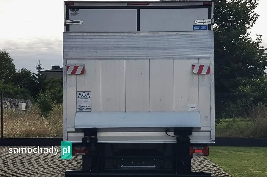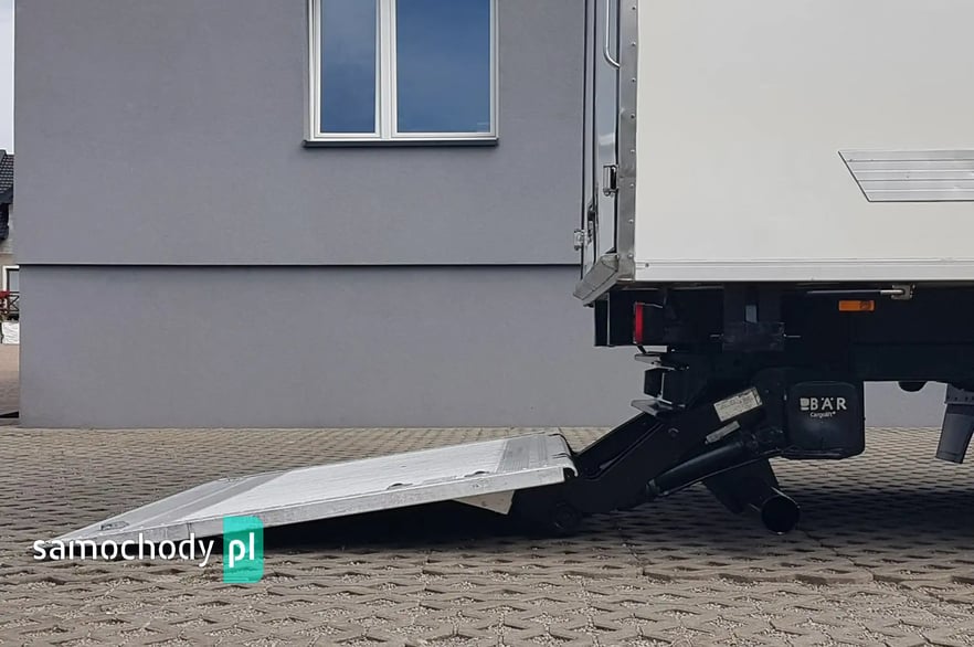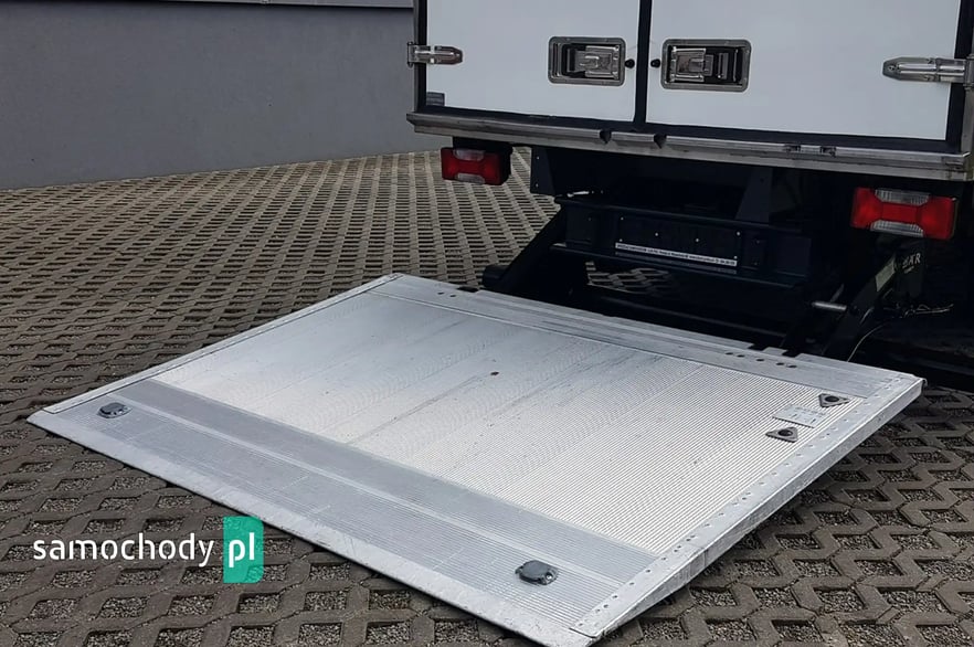 Zabudowa otwierana: 2 x drzwi tył + drzwi boczne. Stopień wejścia bok kontenera. Oświetlenie wewnątrz zabudowy. Aluminiowe boczne osłony zabudowy. Plastikowe tylne nadkola. Uchwyty do mocowania ładunku.
