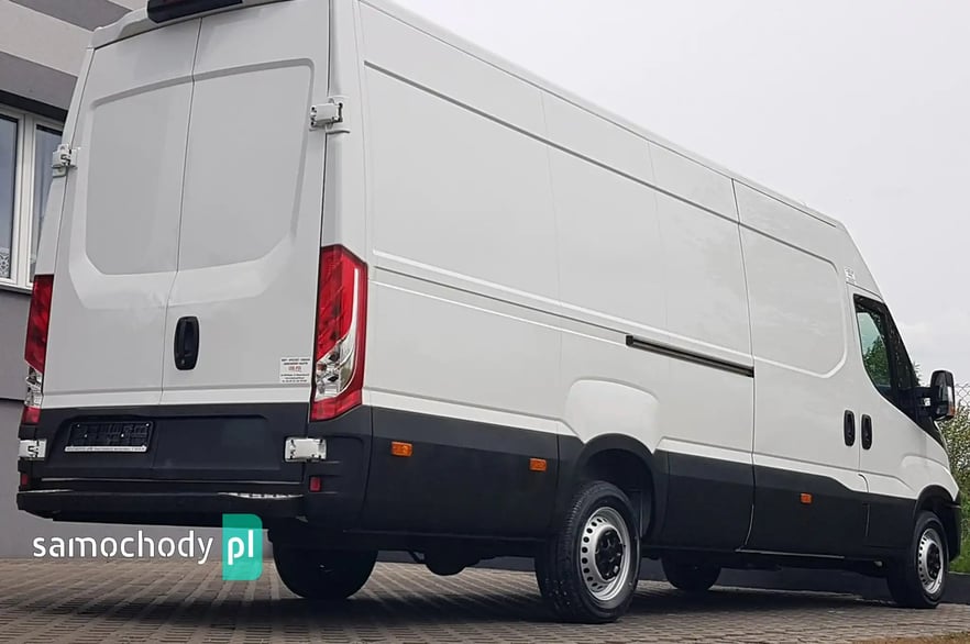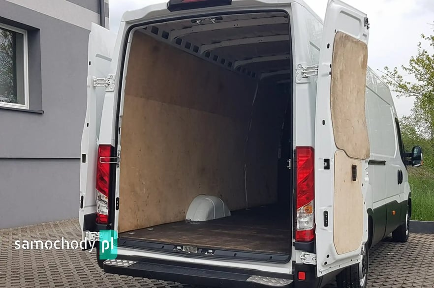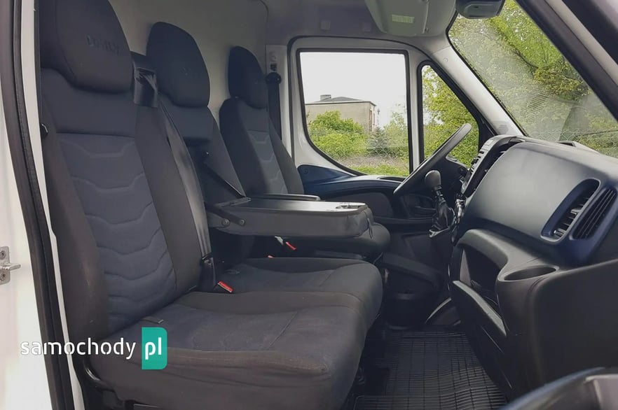 Klimatyzacja automatyczna - klimatronik. Tempomat. Wspomaganie kierownicy. Centralny zamek. Immobilizer. Alarm. ABS. ASR. Komputer pokładowy. Elektryczne lusterka. Elektryczne szyby. Podgrzewane lusterka. System ECO. Oryginalne Iveco Radio CD USB Aux + Bluetooth. Wielofunkcyjna kierownica. Halogeny – Funkcja doświetlania zakrętów. Obrotomierz. Parktronik – czujniki parkowania tył. Dwukolorowa tapicerka. Schowki w desce rozdzielczej. Regulacja wysokości świateł. Regulacja położenia kierownicy. Pneumatyczny fotel kierowcy. Regulacja wysokości fotela kierowcy. Regulacja kąta nachylenia siedziska fotela kierowcy. Regulacja lędźwiowa fotela kierowcy. Regulacja wysokości pasów bezpieczeństwa. Podłokietnik. Zegarek. Termometr zewnętrzny. Schowki w bocznych drzwiach. Klimatyzowany schowek. Kierunkowskazy w lusterkach. Światła boczne obrysowe. Przegroda przestrzeni bagażowej. Uchwyty do mocowania ładunku. Tylny podest. Drzwi boczne przesuwne. Przestrzeń bagażowa - paka wybita dół + boki. Oświetlenie przestrzeni bagażowej - paki. Drzwi tył otwierane 270 stopni. Koła R16C. Automatyczny włącznik świateł – światła jazdy dziennej. Kabina 3 osoby. Schowek pod fotelem pasażera. Składany kluczyk z podziałem na otwieranie przestrzeni bagażowej lub kabiny pasażera. Koło zapasowe. Trzecie światło stop. Atermiczne szyby.