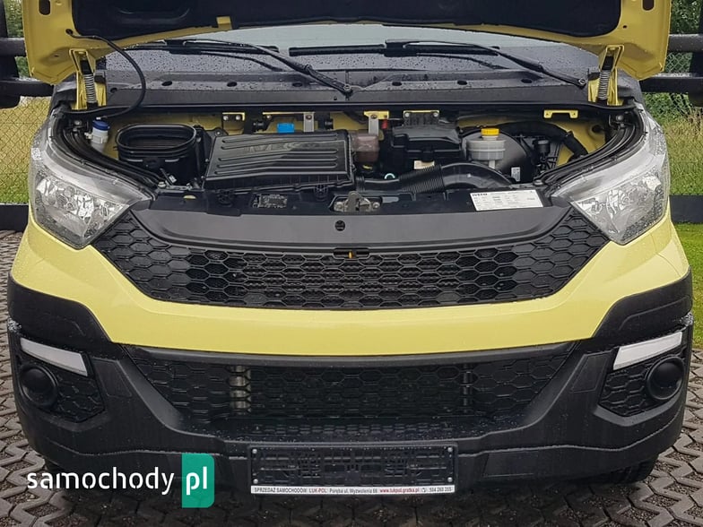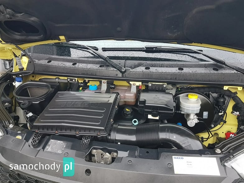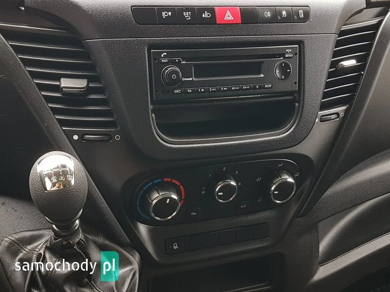 Klimatyzacja. Poduszka powietrzna kierowcy. Wspomaganie kierownicy. Centralny zamek. Immobilizer. ABS. ASR. ESP. Komputer pokładowy. Elektryczne lusterka. Elektryczne szyby. Podgrzewane lusterka. Obrotomierz. Oryginalne Iveco Radio CD USB Aux + Bluetooth. Wielofunkcyjna kierownica. Zegarek. Szerokie lusterka. Kierunkowskazy w lusterkach. Klimatyzowany schowek. Skórzana kierownica. Schowki w desce rozdzielczej. Regulacja wysokości świateł. Regulacja położenia kierownicy. Pneumatyczny fotel kierowcy. Regulacja wysokości fotela kierowcy. Regulacja kąta nachylenia siedziska fotela kierowcy. Regulacja lędźwiowa fotela kierowcy. Regulacja wysokości pasów bezpieczeństwa. Podłokietnik. Schowki w bocznych drzwiach. Automatyczny włącznik świateł – światła jazdy dziennej. Schowek pod fotelem pasażera. Światła boczne obrysowe. Owiewka dachowa. Plastikowe tylne nadkola. Uchwyty do mocowania ładunku. Oświetlenie wewnątrz kontenera. Rozkładany stopień wejścia tył kontenera. Koła R16C. Kabina 3 osoby. Koło zapasowe. Trzecie światło stop. Atermiczne szyby.
