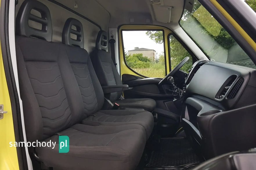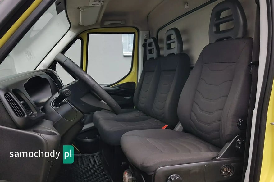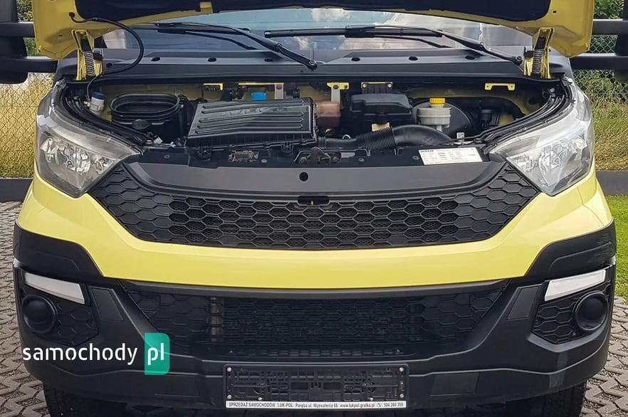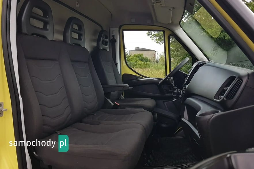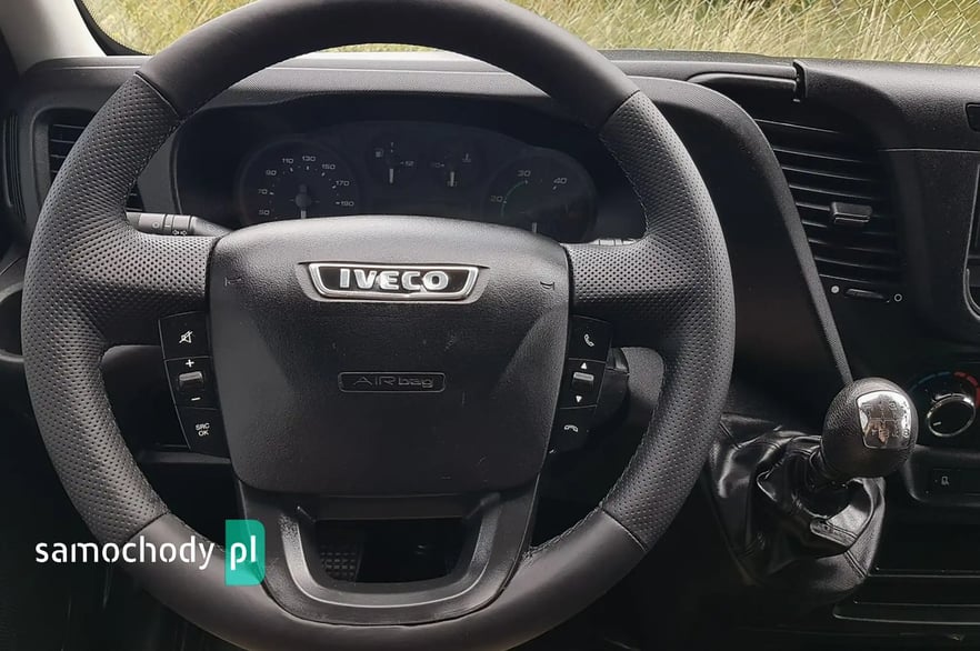 Klimatyzacja. Poduszka powietrzna kierowcy. Wspomaganie kierownicy. Centralny zamek. Immobilizer. ABS. ASR. Komputer pokładowy. Elektryczne lusterka. Elektryczne szyby. Podgrzewane lusterka. Obrotomierz. Oryginalne Iveco Radio CD + Bluetooth. Wielofunkcyjna kierownica. Zegarek. Szerokie lusterka. Kierunkowskazy w lusterkach. Klimatyzowany schowek. Skórzana kierownica. Schowki w desce rozdzielczej. Regulacja wysokości świateł. Regulacja położenia kierownicy. Pneumatyczny fotel kierowcy. Regulacja wysokości fotela kierowcy. Regulacja kąta nachylenia siedziska fotela kierowcy. Regulacja lędźwiowa fotela kierowcy. Regulacja wysokości pasów bezpieczeństwa. Podłokietnik. Schowki w bocznych drzwiach. Automatyczny włącznik świateł – światła jazdy dziennej. Schowek pod fotelem pasażera. Światła boczne obrysowe. Owiewka dachowa. Plastikowe tylne nadkola. Uchwyty do mocowania ładunku. Oświetlenie wewnątrz kontenera. Koła R16C. Kabina 3 osoby. Koło zapasowe. Trzecie światło stop. Atermiczne szyby.
