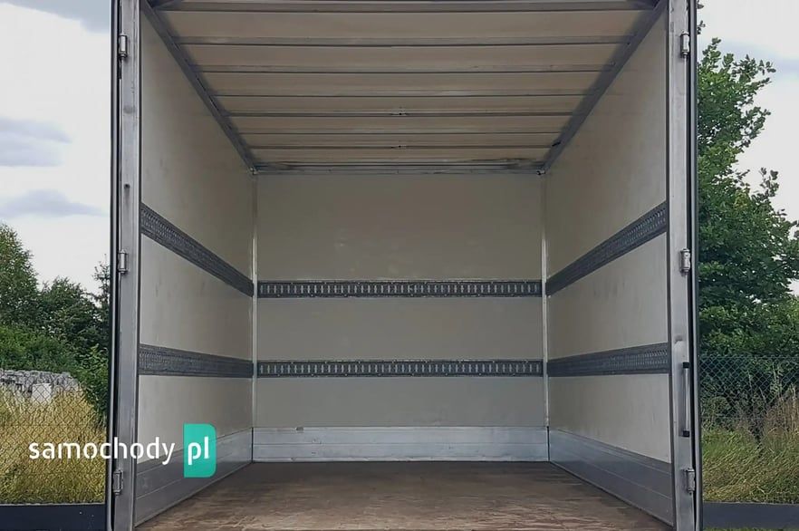Zabudowa : kontener 8 euro palet. Długość wewnątrz: 4,14 m. Szerokość wewnątrz: 2,21 m. Wysokość wewnątrz: 2,20 m. Światło drzwi tył : Wysokość: 2,15 m – Szerokość: 2,13 m.