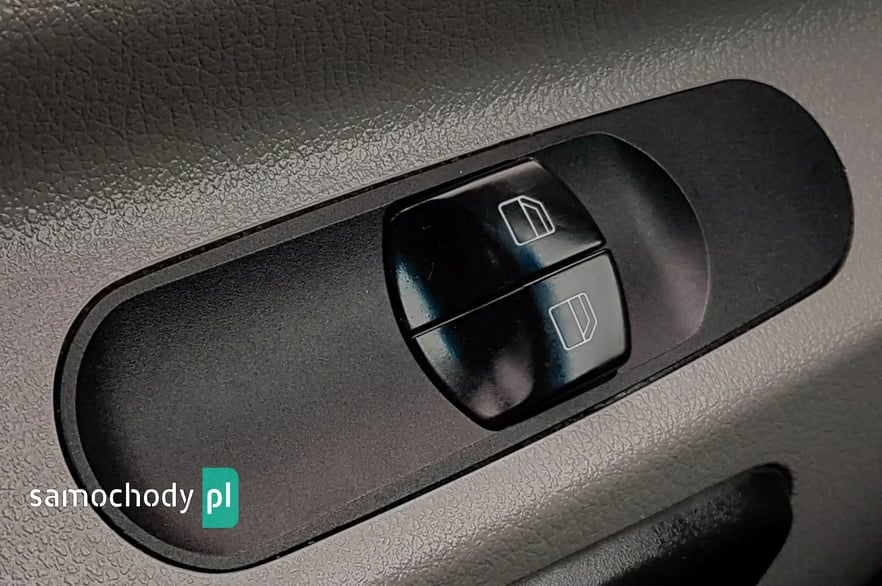 Klimatyzacja. Wspomaganie kierownicy. Centralny zamek. Immobilizer. ABS. ASR. Poduszka powietrzna kierowcy. Elektryczne szyby. Podgrzewane lusterka. Oryginalne duże radio Mercedes USB SD Aux + Bluetooth. System kontroli trakcji. Obrotomierz. Podłokietnik. Regulacja wysokości świateł. Regulacja wysokości fotela kierowcy. Regulacja wysokości pasów bezpieczeństwa. Schowki w desce rozdzielczej. Automatyczny włącznik świateł – światła jazdy dziennej. Kierunkowskazy w lusterkach. Szerokie lusterka. Zegarek. Termometr zewnętrzny. Skórzana kierownica. Schowki w bocznych drzwiach. Schowek w desce rozdzielczej zamykany na kluczyk. Owiewka dachowa. Światła boczne obrysowe. Koła R16C. Koło zapasowe. Kabina 3 osoby. Schowek pod fotelem pasażera. Trzecie światło stop.