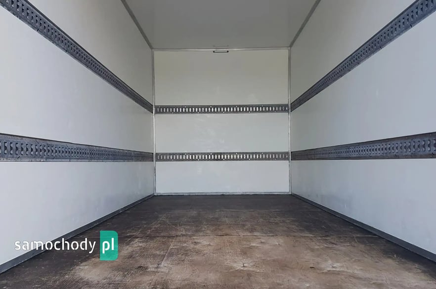 Zabudowa KONTENER o wymiarach : Długość wewnątrz: 4,21 m ; Szerokość wewnątrz: 2,15 m ; Wysokość wewnątrz: 2,30 m ; Wysokość w drzwiach: 2,27 m. Rozkładany stopień wejścia tył kontenera. Uchwyty do mocowania ładunku. Plastikowe tylne nadkola. Oświetlenie wewnątrz kontenera.