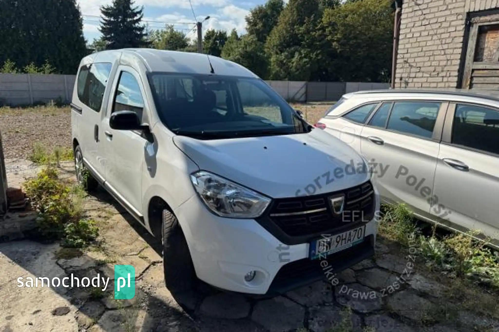 ABS z systemem wspomagania nagłego hamowaniaCzujnik ciśnienia w oponachDrzwi boczne lewe odsuwane z szybą uchylanąDrzwi boczne prawe odsuwane z szybą uchylanąDrzwi tylne dwuskrzydłowe, dzielone asymetrycznieFelgi stalowe 15 z ogumieniemFotel kierowcy z manualną regulacją wysokościImmobilizerKieszenie w oparciach foteli przednichKlimatyzacja manualnaKolumna kierownicy regulowana manualnie w pionieKomputer pokładowyLakier uniListwy boczne w kolorze czarnymLusterka boczne regulowane elektrycznie i ogrzewaneLusterka boczne w kolorze nadwoziaOświetlenie w drugim rzędziePoduszka powietrzna kierowcyPoduszka powietrzna pasażeraPoduszki powietrzne boczne, przódRadio Dacia Plug & Radio z MP3 i BluetoothRoleta przestrzeni bagazowejSterowanie radiem pod kolumną kierownicySystem kontroli toru jazdy ESC z funkcją zapobiegania poślizgowi kół przy ruszaniu ASRSzyby przednie podnoszone elektrycznieŚwiatła do jazdy dziennej, z żarówką halogenowąŚwiatła przeciwmgielneUchwyty ISOFIX do instalacji fotelika dziecięcego z tyłuWspomaganie układu kierowniczegoWycieraczka tylnej szybyZamek centralny z pilotemZderzaki w kolorze nadwoziaCzujnik parkowania z tyłuKoło zapasowe