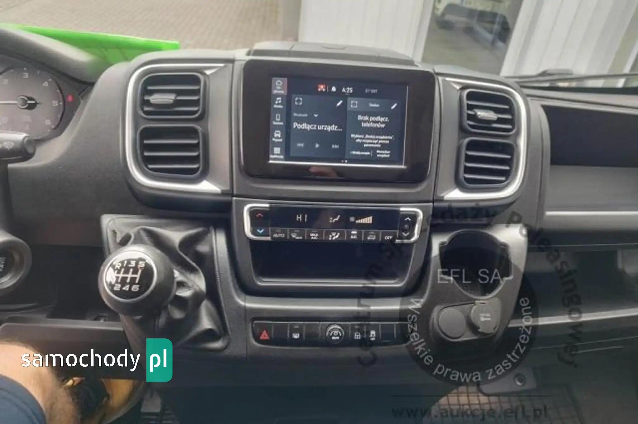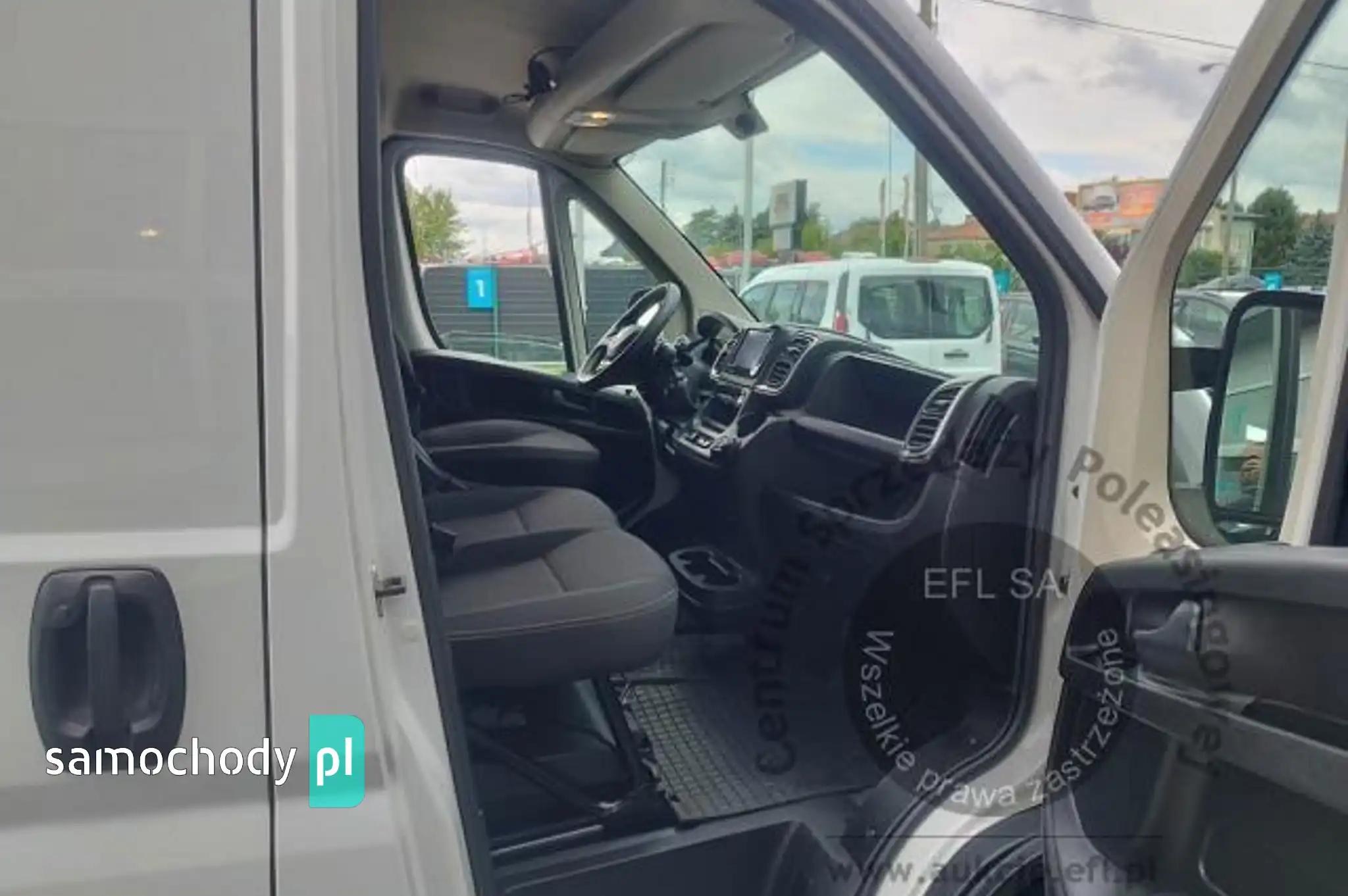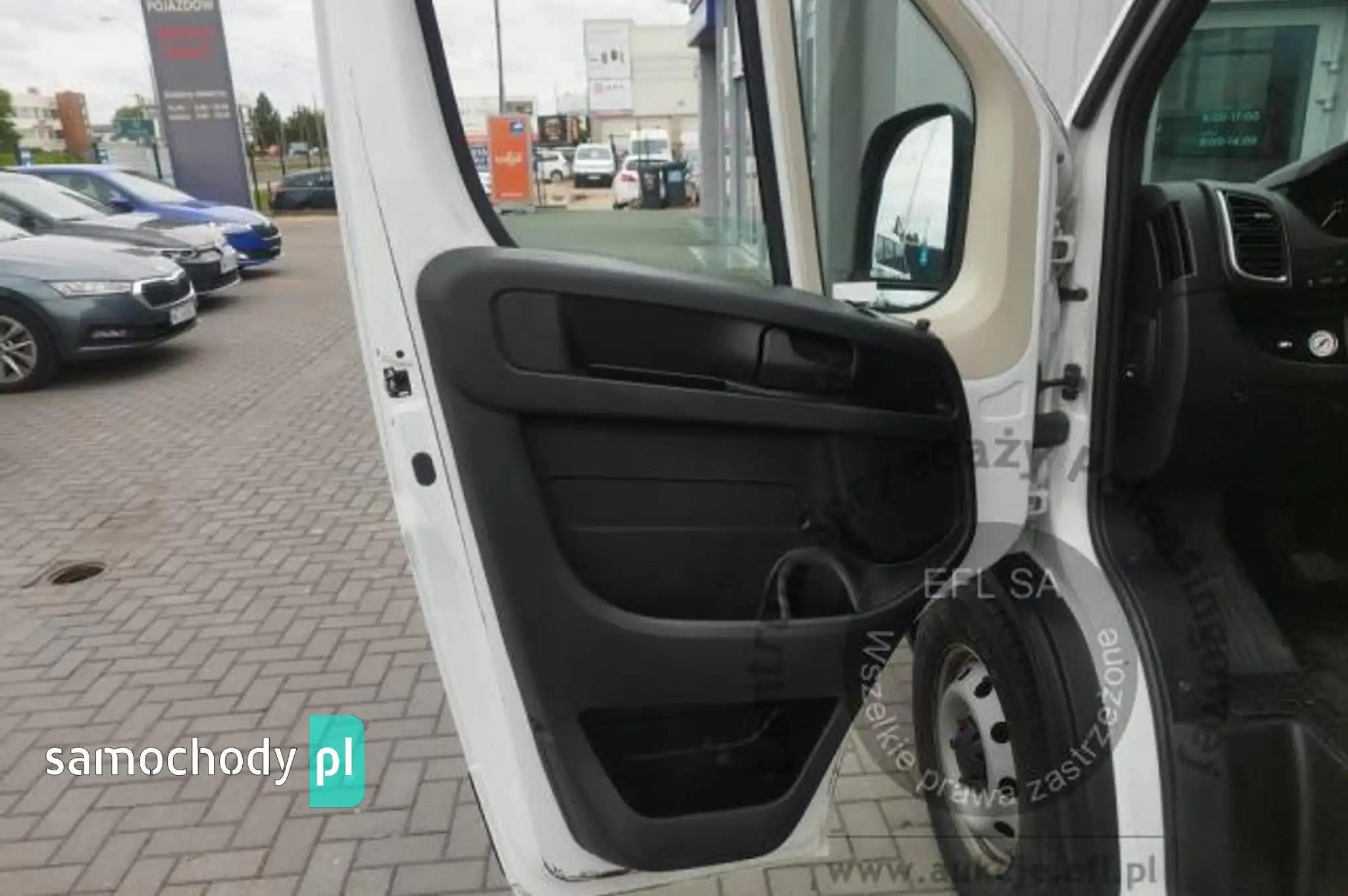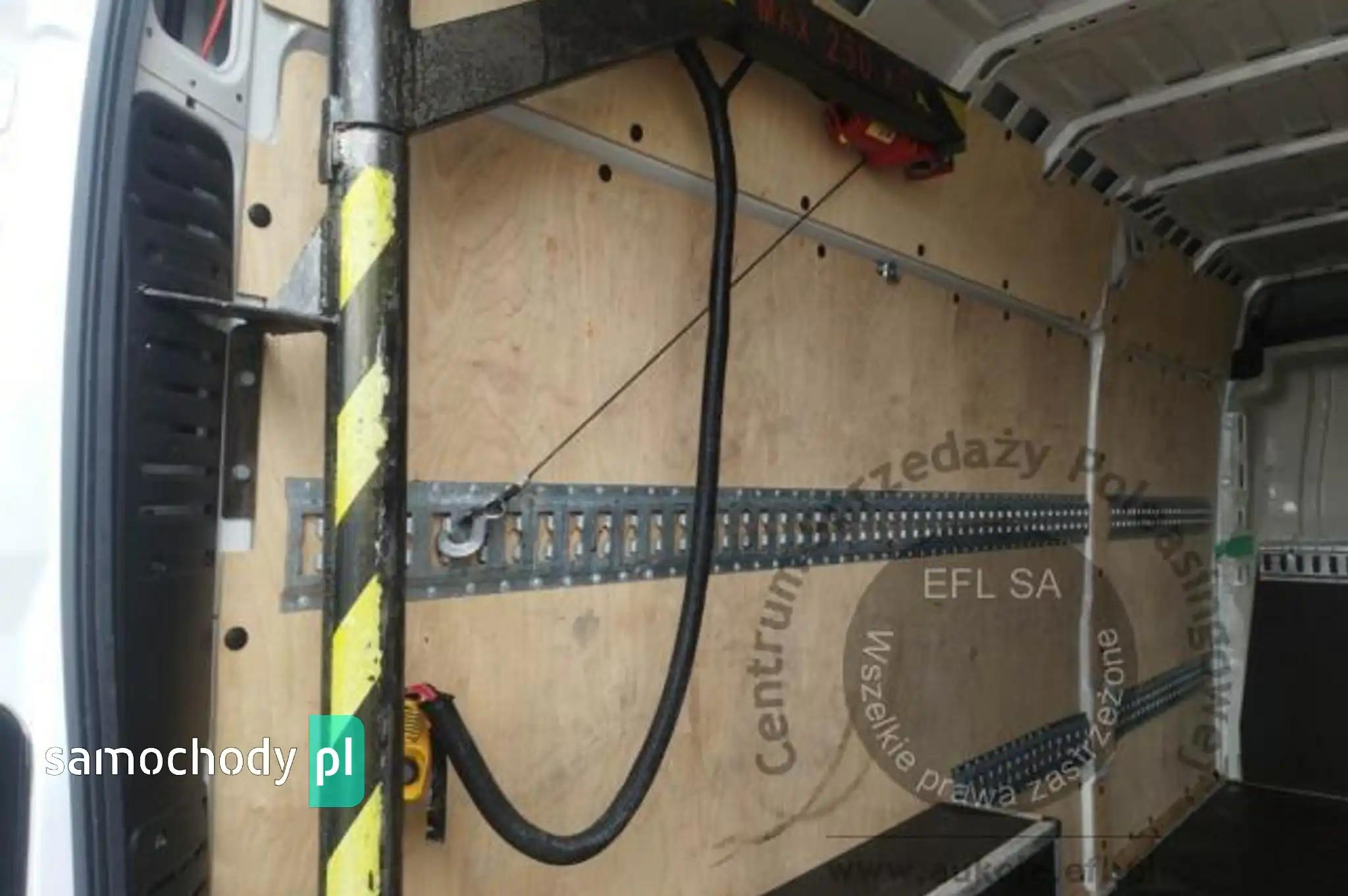 Drzwi tylne bez szybyKoło zapasowe pełnowymiarowePrzegroda stała bez szybyZbiornik paliwa o pojemności 90 litrówDrzwi tylne otwierane pod kątem 270 stopniFotel kierowcy amortyzowany z pełną regulacjąFotel pasażera dwumiejscowy ze schowkiem i stolikiemListwy plastikowe ochronne na przednich nadkolachPakiet Business PlusDeska rozdzielcza TechnoHamulec postojowy elektrycznyKamera cofaniaKlimatyzacja automatycznaLusterka boczne regulowane elektrycznie i ogrzewaneŁadowarka do smartfona, bezprzewodowaRadio 7'' z bluetooth, dab, carplay, android autoSystem bezkluczykowego dostępuPółka pod sufitemŚwiatła do jazdy dziennej LEDŚwiatła przeciwmgielne z doświetlaniem zakrętówTapicerka czarna CREPE, podwójne srebrne przeszycia po bokach, zagłówek z logo DucatoTempomat z ogranicznikiem prędkościUchwyt uniwersalny do urządzeń mobilnychZawieszenie tylne z podwójnymi resorami - wzmocnioneŻuraw, zabudowa tył, poduszki powietrzne tylnej osi Alarm, CB Radio
