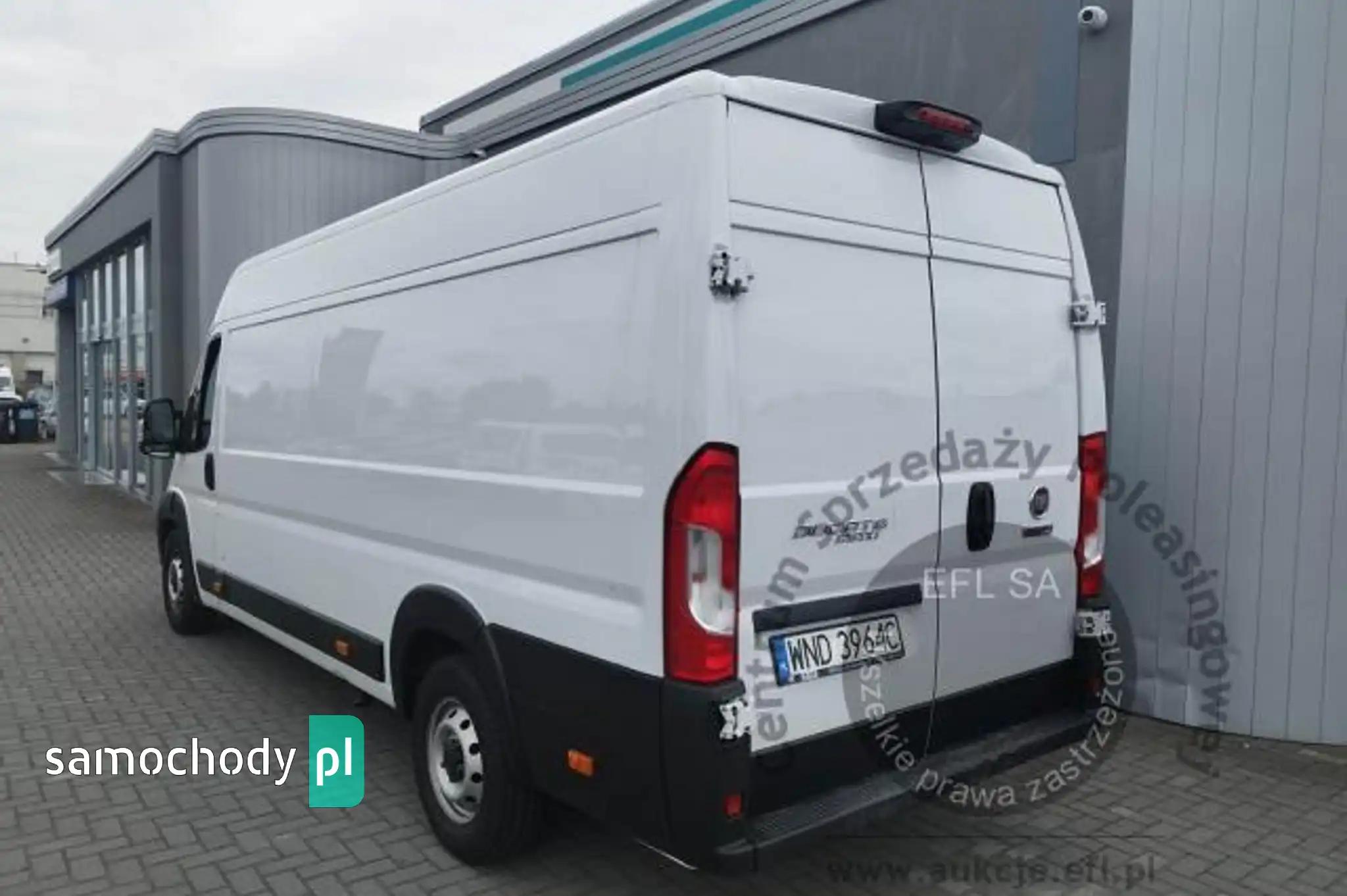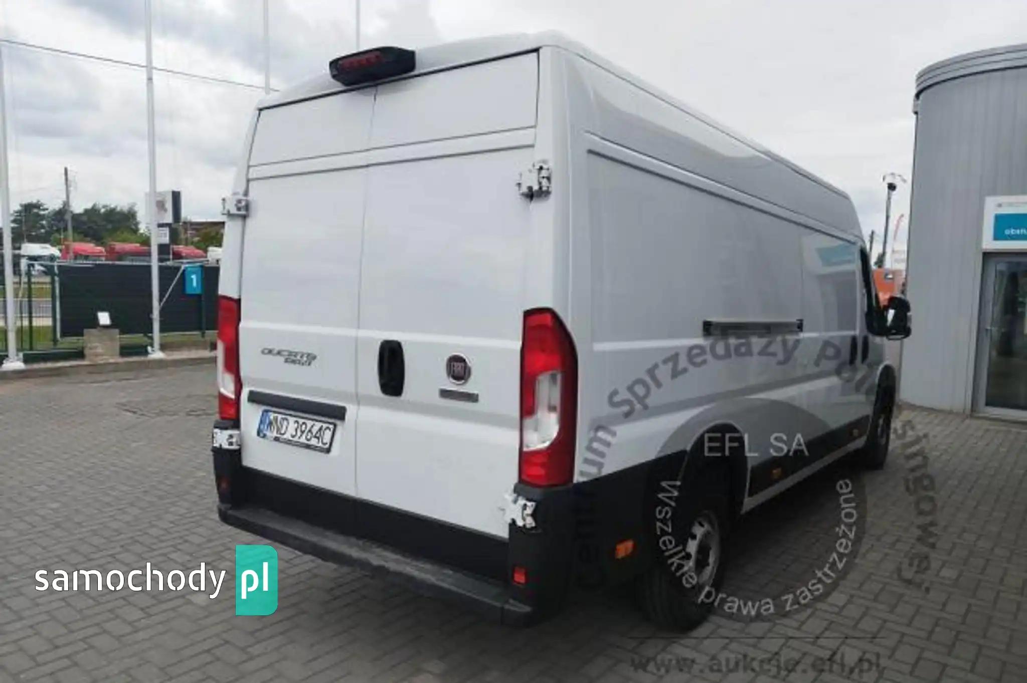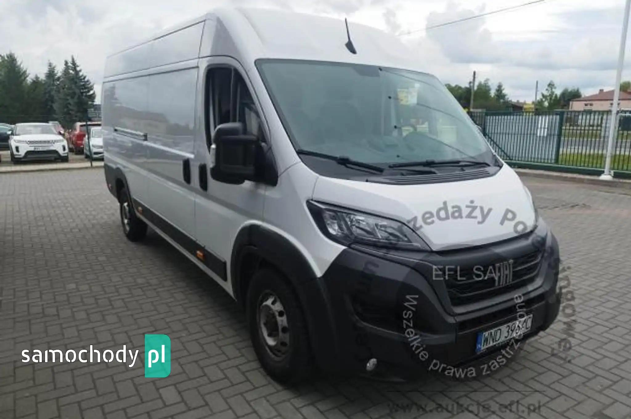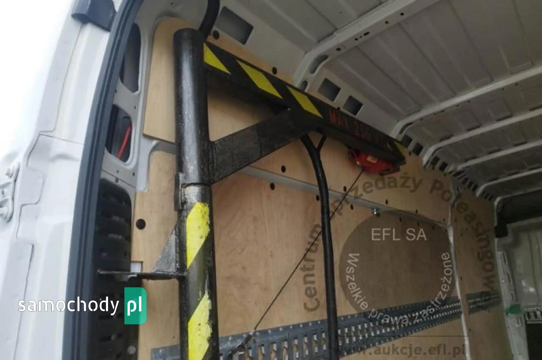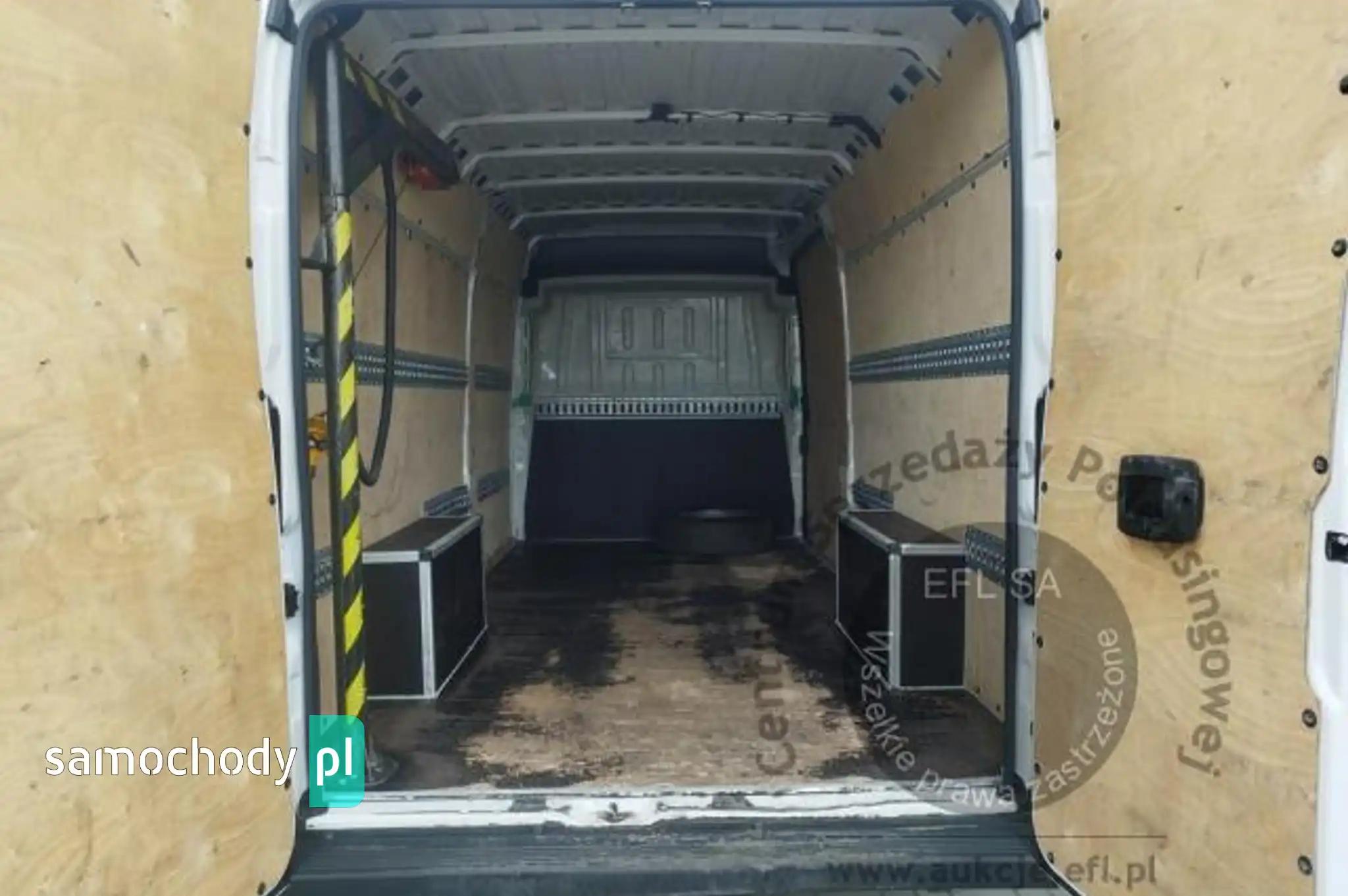 Drzwi tylne bez szybyKoło zapasowe pełnowymiarowePrzegroda stała bez szybyZbiornik paliwa o pojemności 90 litrówDrzwi tylne otwierane pod kątem 270 stopniFotel kierowcy amortyzowany z pełną regulacjąFotel pasażera dwumiejscowy ze schowkiem i stolikiemListwy plastikowe ochronne na przednich nadkolachPakiet Business PlusDeska rozdzielcza TechnoHamulec postojowy elektrycznyKamera cofaniaKlimatyzacja automatycznaLusterka boczne regulowane elektrycznie i ogrzewaneŁadowarka do smartfona, bezprzewodowaRadio 7'' z bluetooth, dab, carplay, android autoSystem bezkluczykowego dostępuPółka pod sufitemŚwiatła do jazdy dziennej LEDŚwiatła przeciwmgielne z doświetlaniem zakrętówTapicerka czarna CREPE, podwójne srebrne przeszycia po bokach, zagłówek z logo DucatoTempomat z ogranicznikiem prędkościUchwyt uniwersalny do urządzeń mobilnychZawieszenie tylne z podwójnymi resorami - wzmocnioneŻuraw, zabudowa tył, poduszki powietrzne tylnej osi Alarm, CB Radio