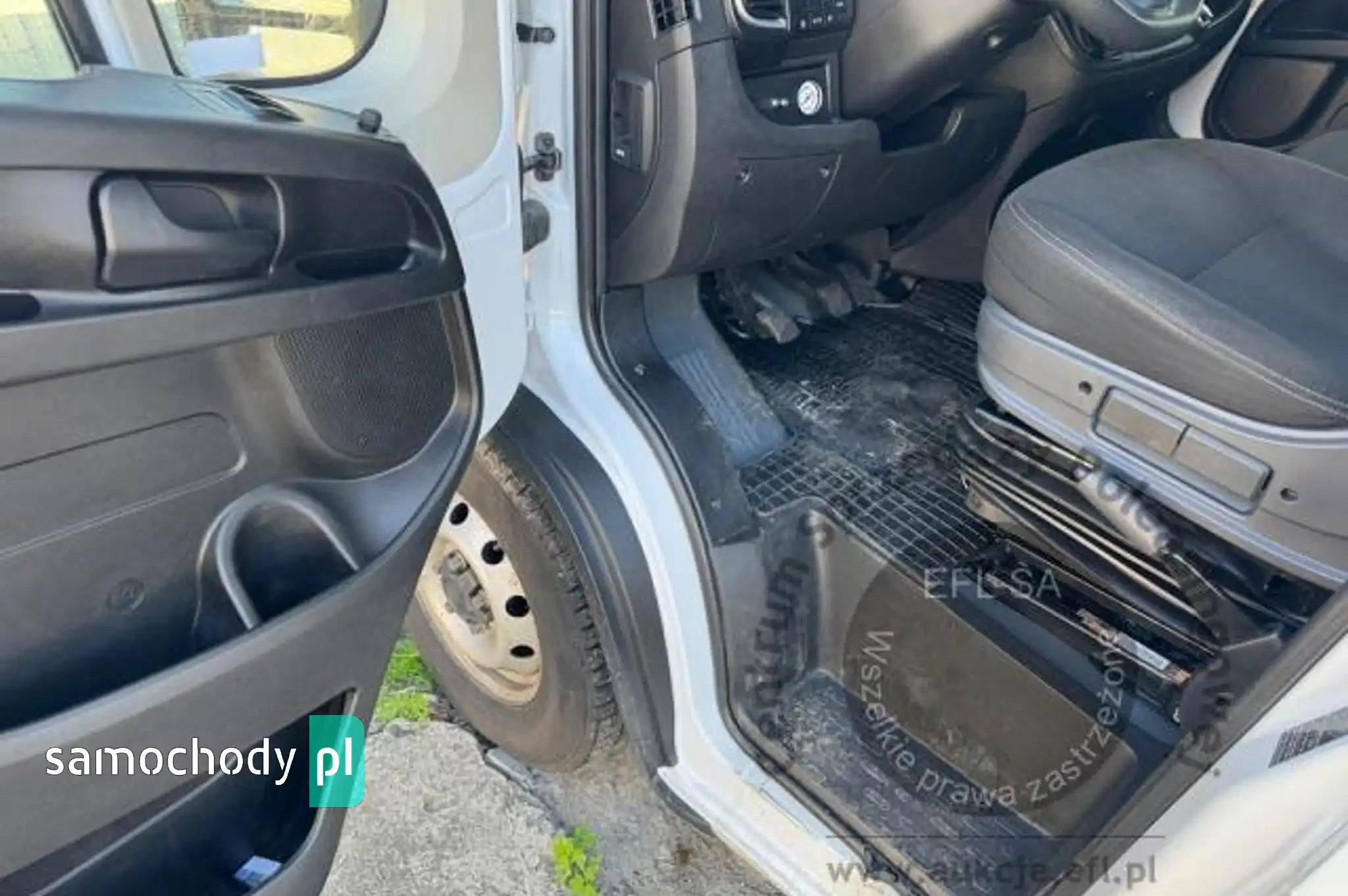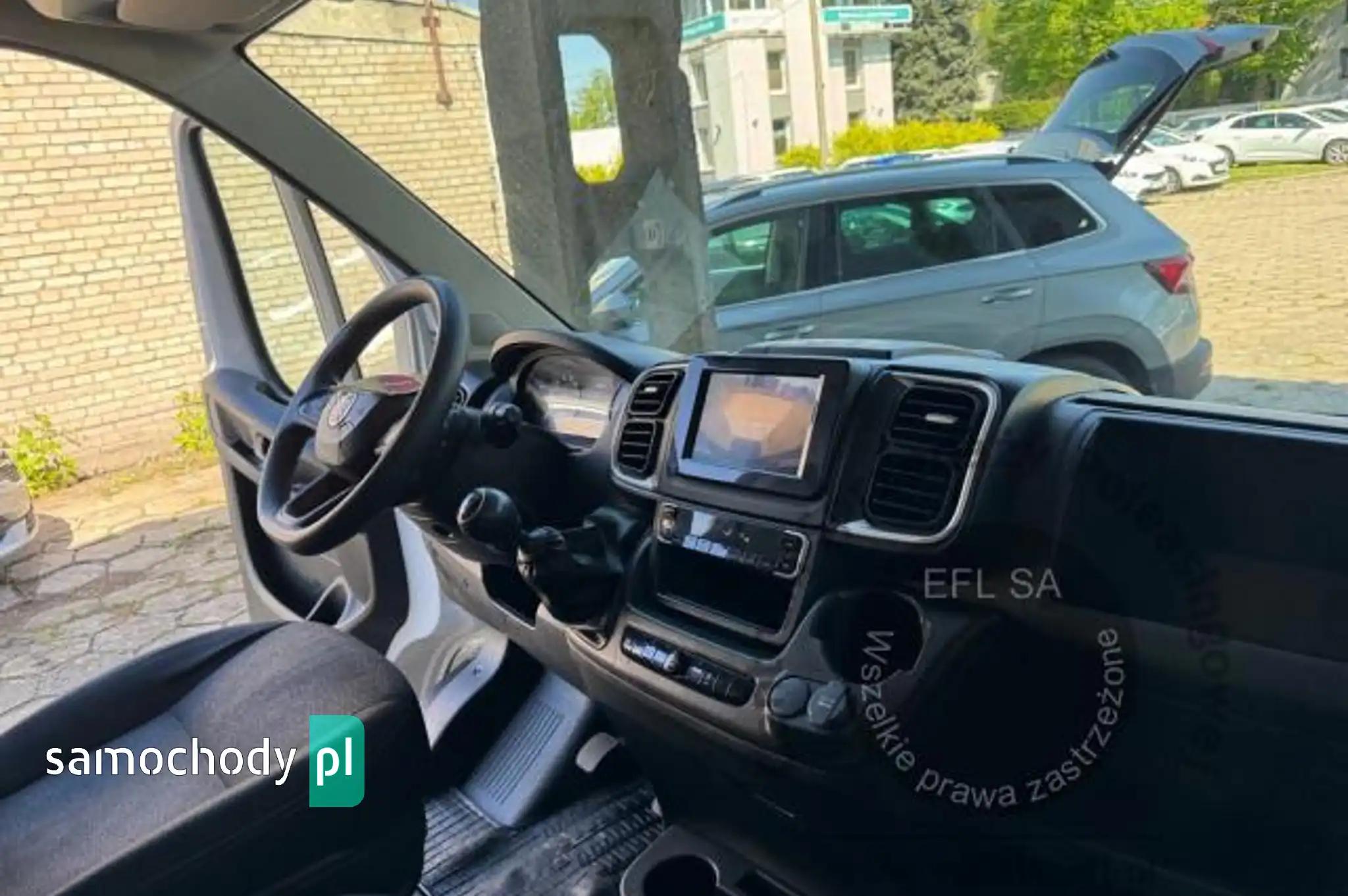 Koło zapasowe pełnowymiarowePrzegroda stała bez szybyZbiornik paliwa o pojemności 90 litrówDrzwi tylne otwierane pod kątem 270 stopniFotel kierowcy amortyzowany z pełną regulacjąFotel pasażera dwumiejscowy ze schowkiem i stolikiemListwy plastikowe ochronne na przednich nadkolachPakiet Business PlusDeska rozdzielcza TechnoHamulec postojowy elektrycznyKamera cofaniaKlimatyzacja automatycznaLusterka boczne regulowane elektrycznie i ogrzewaneŁadowarka do smartfona, bezprzewodowaRadio 7'' z bluetooth, dab, carplay, android autoSystem bezkluczykowego dostępuPółka pod sufitemŚwiatła do jazdy dziennej LEDŚwiatła przeciwmgielne z doświetlaniem zakrętówTapicerka czarna CREPE, podwójne srebrne przeszycia po bokach, zagłówek z logo DucatoTempomat z ogranicznikiem prędkościUchwyt uniwersalny do urządzeń mobilnychZawieszenie wzmocnione dla ciężkich zabudówŻuraw, zabudowa tył, Poduszki powietrzne tylnej osi AlarmCB Radio
