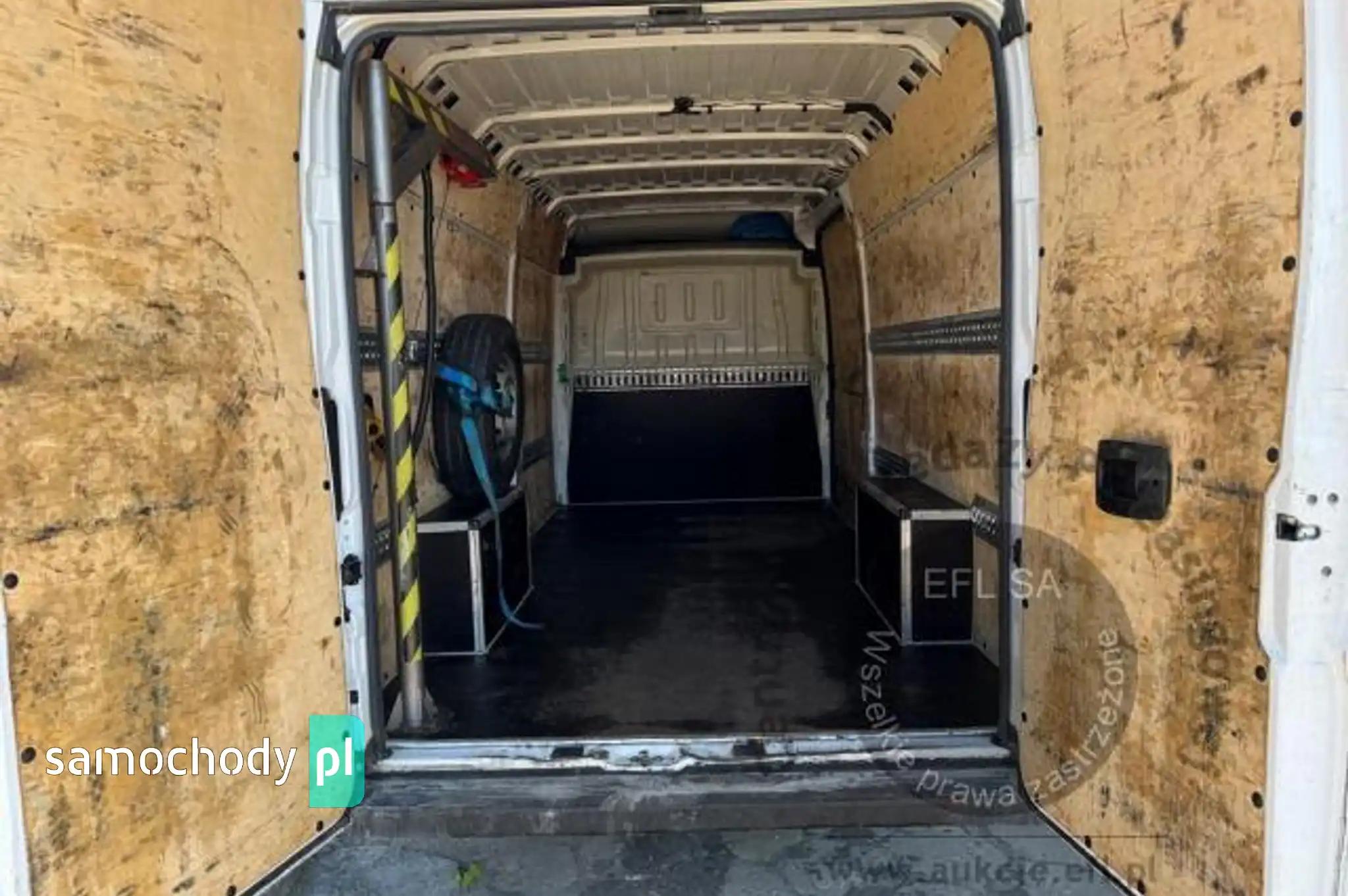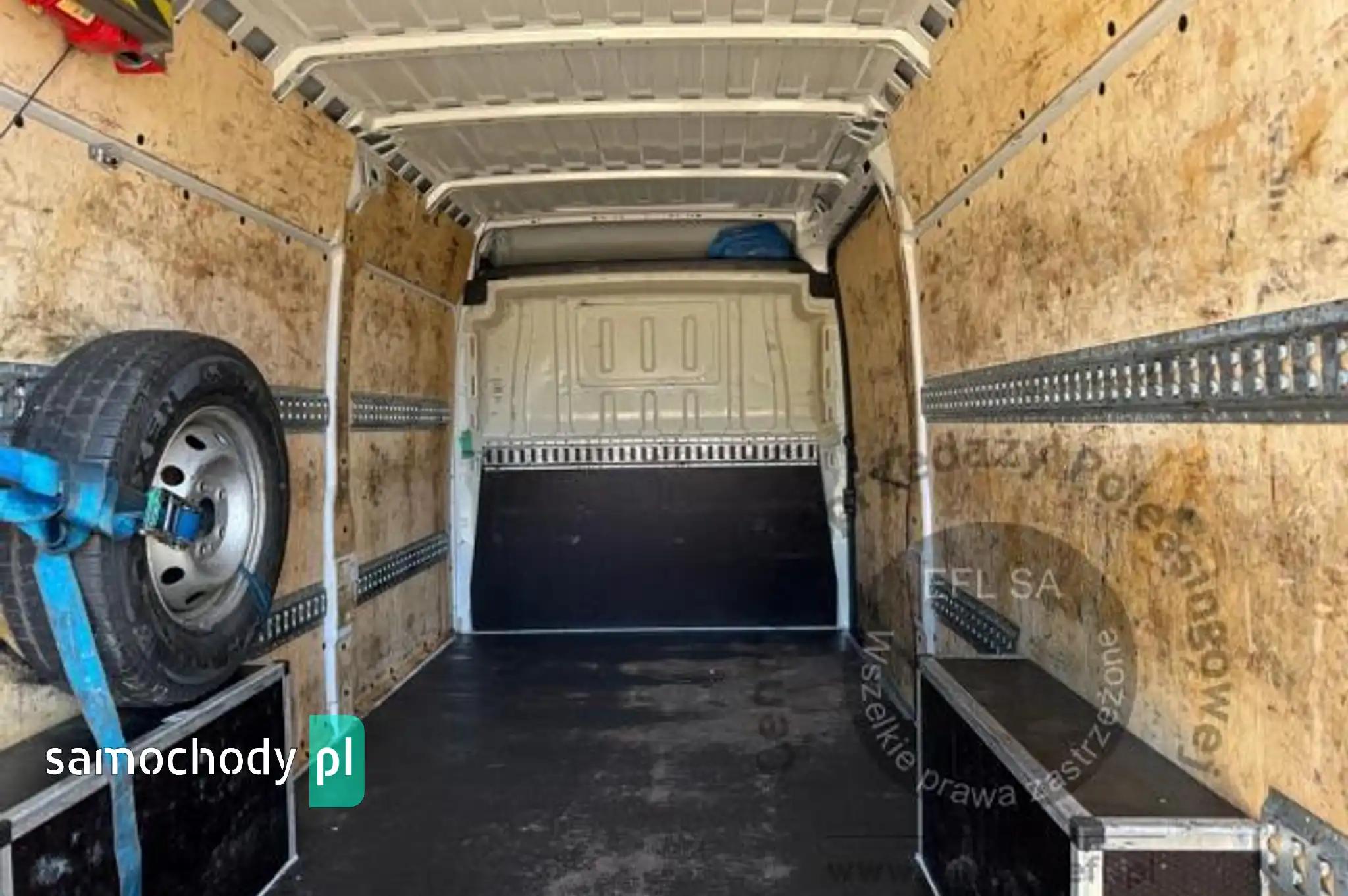 Koło zapasowe pełnowymiarowePrzegroda stała bez szybyZbiornik paliwa o pojemności 90 litrówDrzwi tylne otwierane pod kątem 270 stopniFotel kierowcy amortyzowany z pełną regulacjąFotel pasażera dwumiejscowy ze schowkiem i stolikiemListwy plastikowe ochronne na przednich nadkolachPakiet Business PlusDeska rozdzielcza TechnoHamulec postojowy elektrycznyKamera cofaniaKlimatyzacja automatycznaLusterka boczne regulowane elektrycznie i ogrzewaneŁadowarka do smartfona, bezprzewodowaRadio 7'' z bluetooth, dab, carplay, android autoSystem bezkluczykowego dostępuPółka pod sufitemŚwiatła do jazdy dziennej LEDŚwiatła przeciwmgielne z doświetlaniem zakrętówTapicerka czarna CREPE, podwójne srebrne przeszycia po bokach, zagłówek z logo DucatoTempomat z ogranicznikiem prędkościUchwyt uniwersalny do urządzeń mobilnychZawieszenie wzmocnione dla ciężkich zabudówŻuraw, zabudowa tył, Poduszki powietrzne tylnej osi AlarmCB Radio