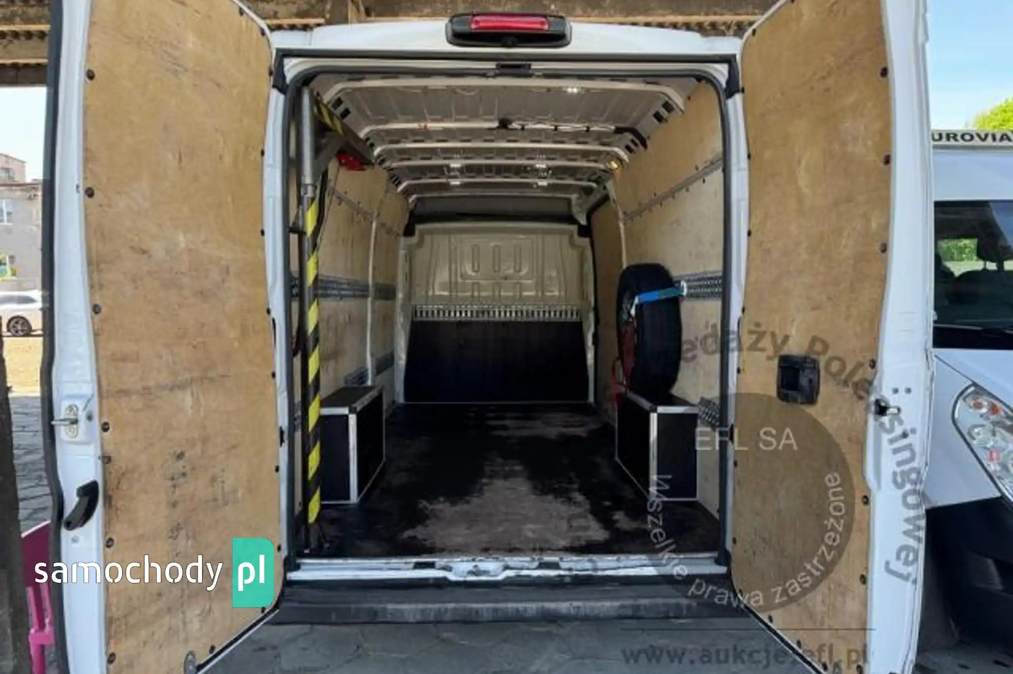 Drzwi tylne bez szybyFotel kierowcy z regulacją lędźwiową i podłokietnikiemFotel pasażera dwumiejscowyKoło zapasowe pełnowymiarowePrzegroda stała bez szybyZbiornik paliwa o pojemności 90 litrówDrzwi tylne otwierane pod kątem 270 stopniFotel kierowcy amortyzowany z pełną regulacjąFotel pasażera dwumiejscowy ze schowkiem i stolikiemListwy plastikowe ochronne na przednich nadkolachPakiet Business PlusDeska rozdzielcza TechnoHamulec postojowy elektrycznyKamera cofaniaKlimatyzacja automatycznaLusterka boczne regulowane elektrycznie i ogrzewaneŁadowarka do smartfona, bezprzewodowaRadio 7'' z bluetooth, dab, carplay, android autoSystem bezkluczykowego dostępuPółka pod sufitemŚwiatła do jazdy dziennej LEDŚwiatła przeciwmgielne z doświetlaniem zakrętówTapicerka czarna CREPE, podwójne srebrne przeszycia po bokach, zagłówek z logo DucatoTempomat z ogranicznikiem prędkościUchwyt uniwersalny do urządzeń mobilnychZawieszenie tylne z podwójnymi resorami - wzmocnioneAlarmCB Radio Żuraw, zabudowa tył, Poduszki powietrzne tylnej osi