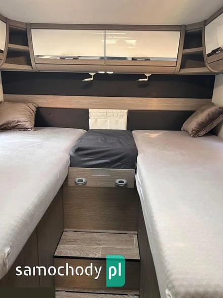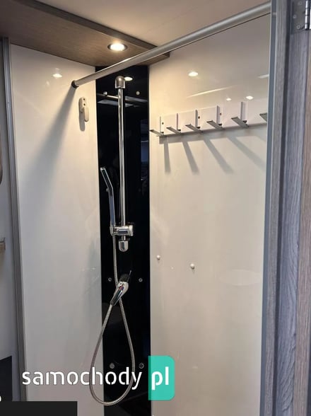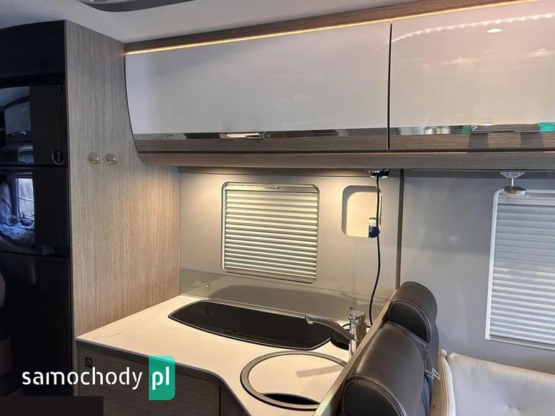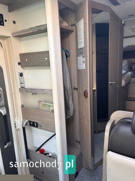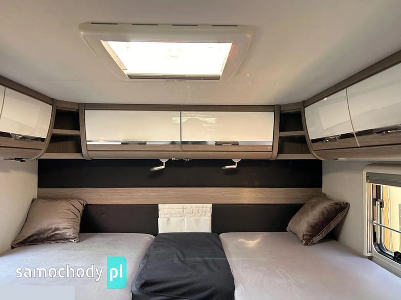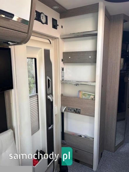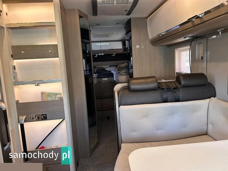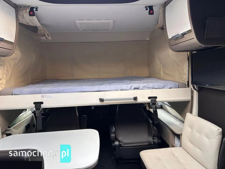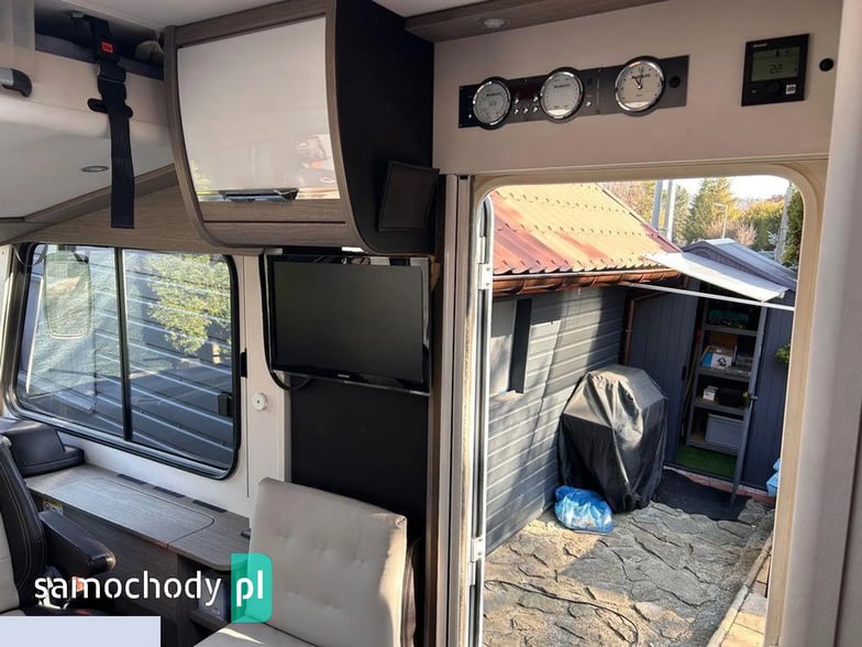 Klimatyzacja Truma Aventa w części mieszkalnej, lodówka 190litrłów + zamrażalnik 35 litrów +grill/piekarnik/, antena SAT Oyster Vision /na dwa niezależne Tv/, ogrzewanie Truma kombi6+E, Vebasto, grzana podłoga, duo control na dwie butle automatycznie przełączane+ tankowanie gazu na CPN, moskitiera w drzwiach wejściowych i oknach, oświetlenie LED w całym pojeździe, markiza zewnętrzna Thule, bagażnik na 4 rowery. Tapicerka w kamperze skórzana, przednie fotele w kabinie kapitanskie obrotowe, duże tylne bakisty i wiele innych udogodnień.