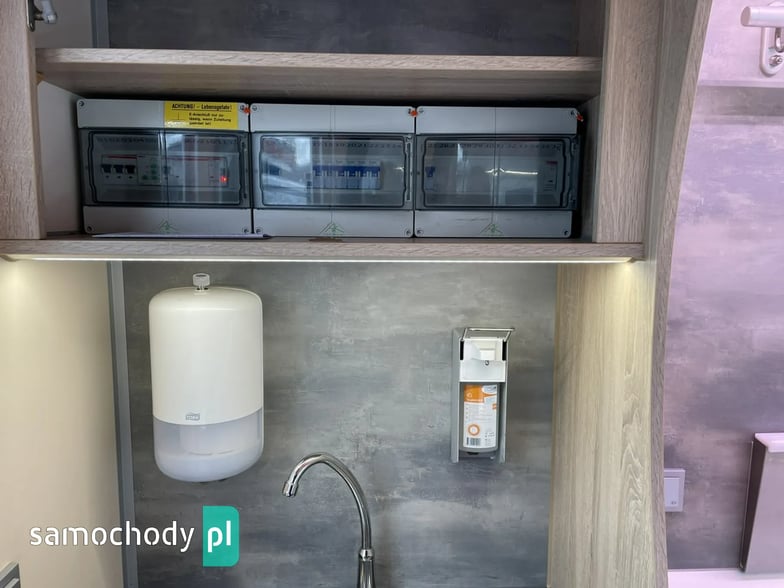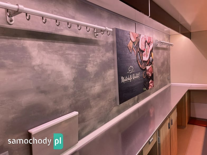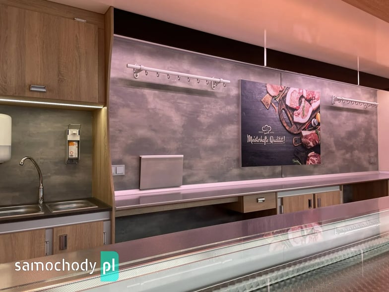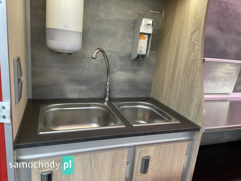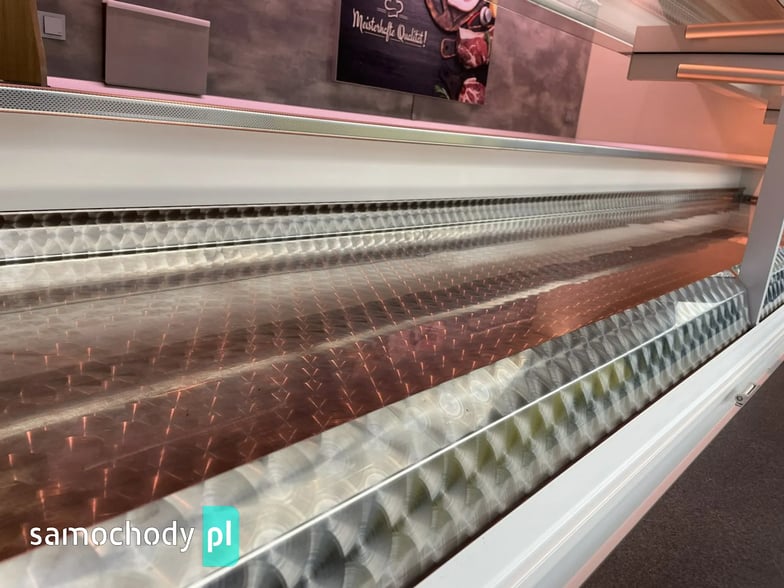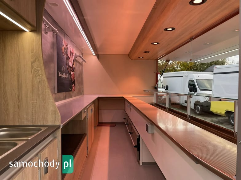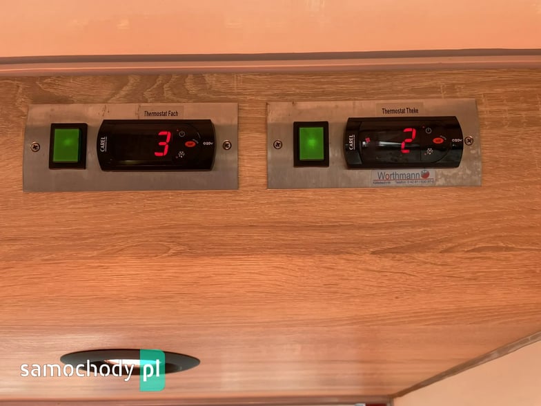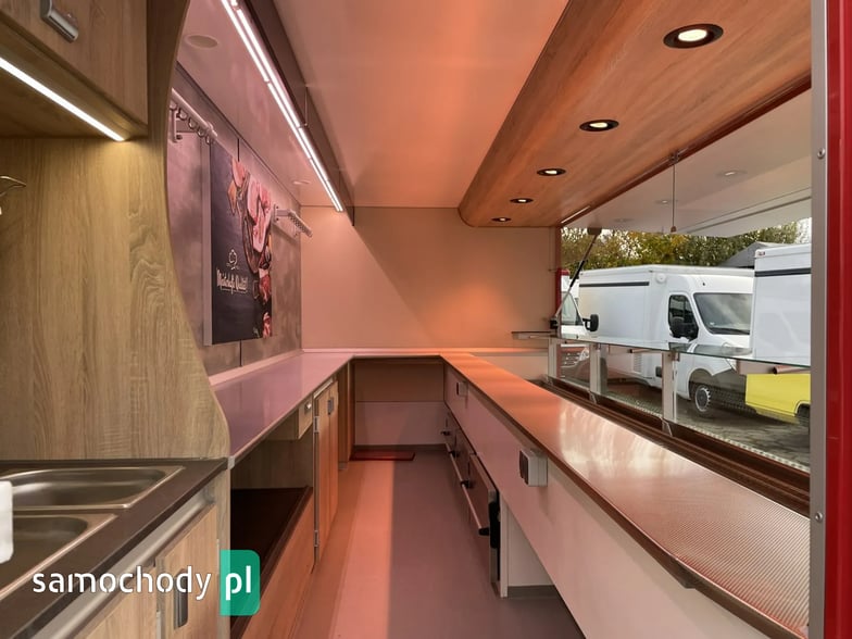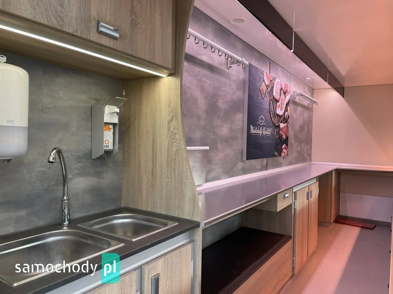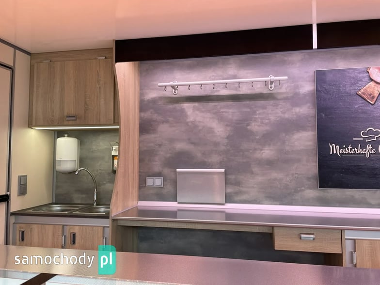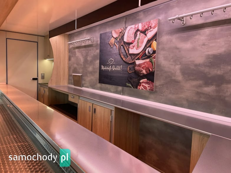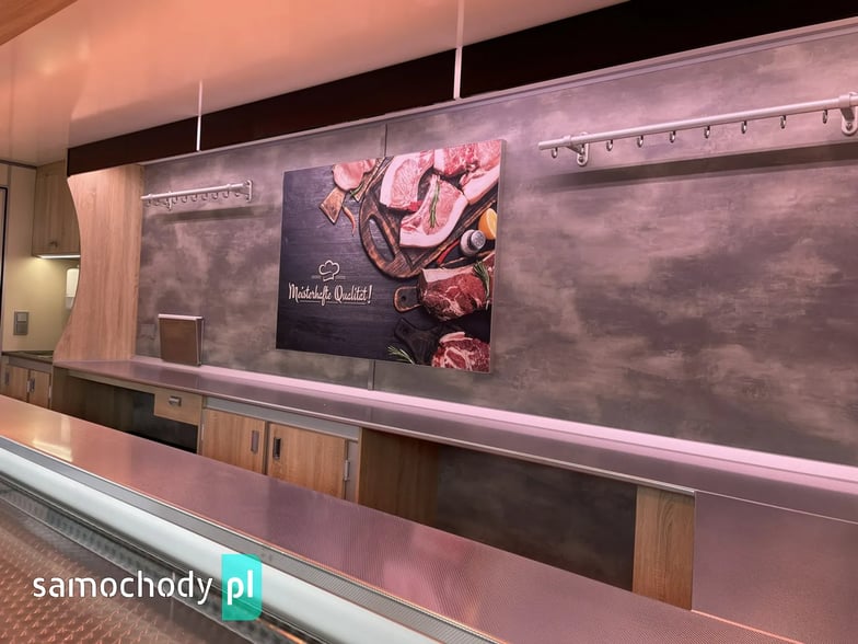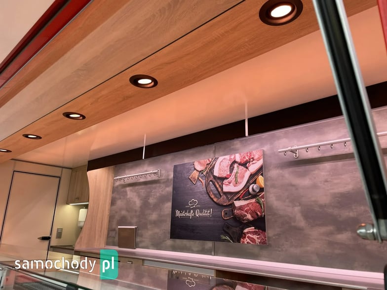 niemieckiej firmy Borco-Hohns, Długość zabudowy 5,30 m, bok otwierany , lada chłodnicza wystawowa panoramiczna,pod ladą 3 duże szuflady chłodnicze,regały,haki,pinek,uchwyt na papier,wiatrochron, podłoga przeciwpoślizgowa, atrakcyjne oświetlenie oraz zabudowa, kącik socjalno-sanitarny-zlewozmywak dwu komorowy, woda ciepła i zimna,DMC 3500 kg,Stan Bardzo Dobry.