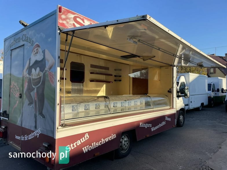 Fiat Ducato ,Autosklep do sprzedaży wędlin oraz innej gastronomi, bok otwierany elektryczny, lada wystawowa chłodnicza panoramiczna,pod ladą duże szuflady chłodnicze,Własne zasilanie -agregat prądotwórczy ,regały,uchwyt na papier,możliwość montażu haki, podłoga przeciwpoślizgowa,atrakcyjne oświetlenie zabudowy, kącik socjalno-sanitarny-zlewozmywak.wiatrochron,w aucie zamontowano w serwisie nowy silnik z fakturą do wglądu,przebieg karoserii 210tkm,Stan Dobry,DMC 3500 kg ,Więcej informacji 509683101