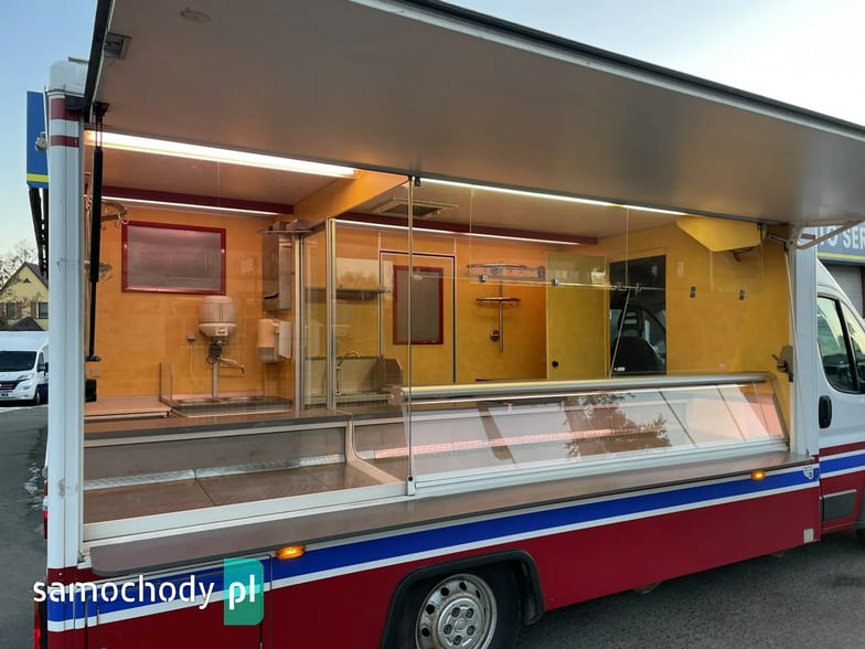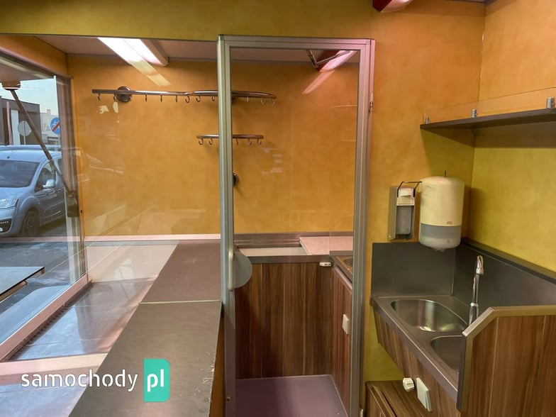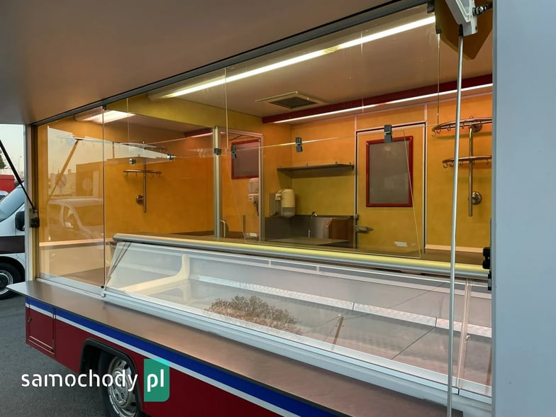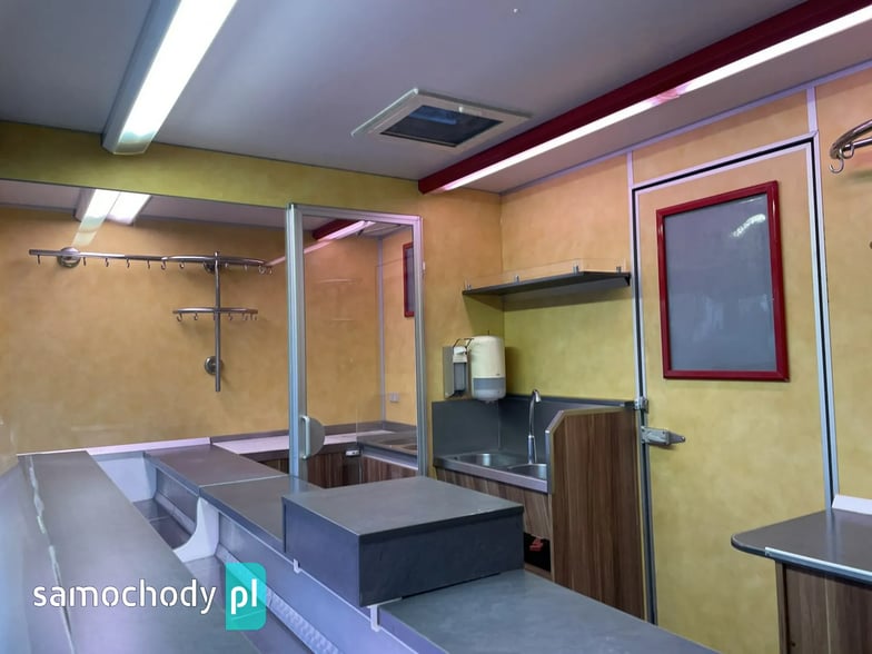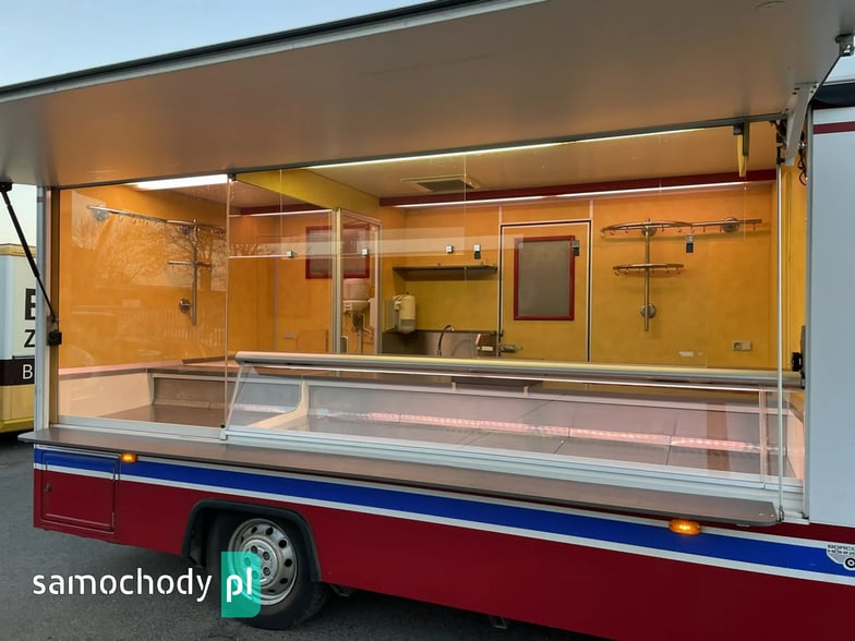 Niemieckiej firmy Borco-Hohns,Wyposażenie: bok otwierany elektrycznie, lada sprzedawcy chłodnicza panoramiczna długa, pod ladą 2 duże szuflady chłodnicza,drugie pomieszczenie chłodnicze z klimatyzacją,własne zasilanie 12V-230V akumulatory żelowe + przetwornice,regały,haki,pułki,uchwyt na papier,przejście do szoferki,wiatrochron,podłoga przeciwpoślizgowa, atrakcyjne oświetlenie oraz zabudowa, kącik socjalno-sanitarny-zlewozmywak dwu komorowy, woda ciepła i zimna,DMC 3500.na prawo jazdy b ,