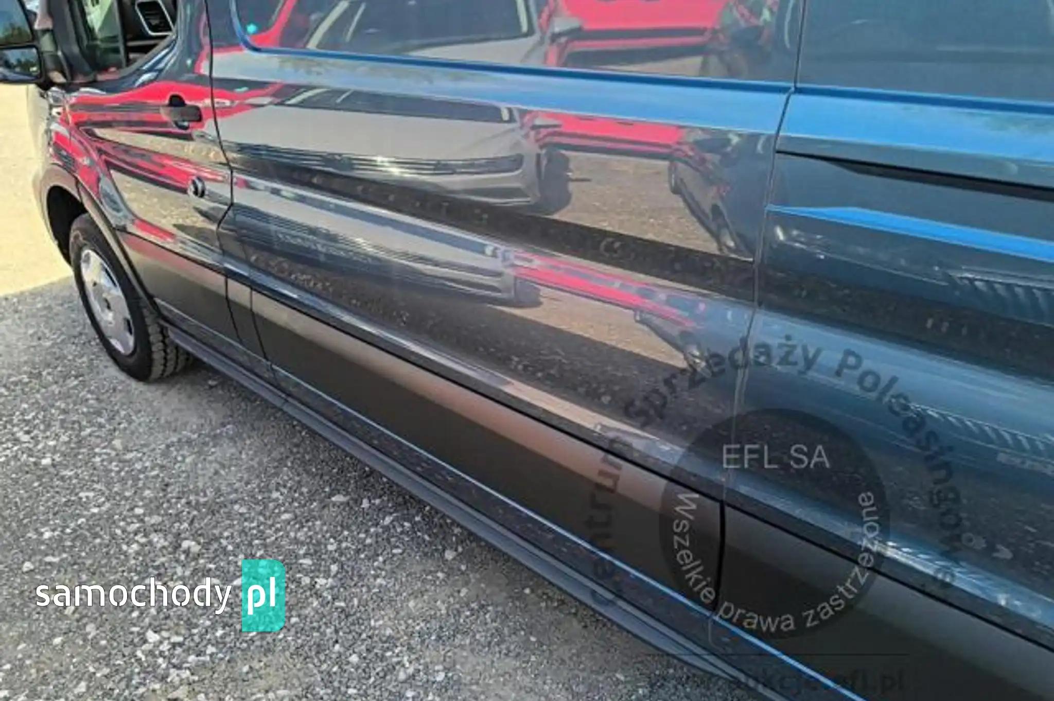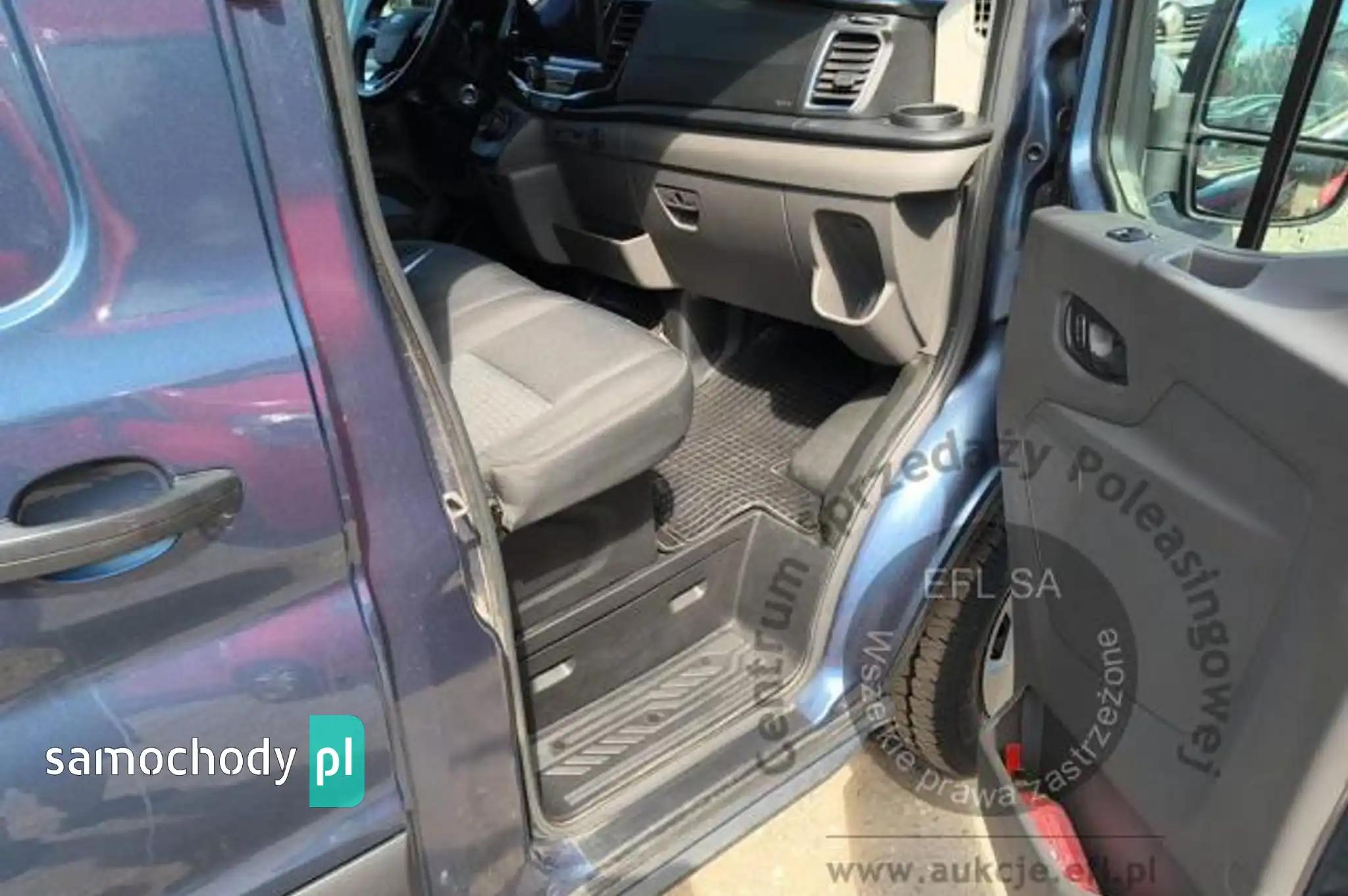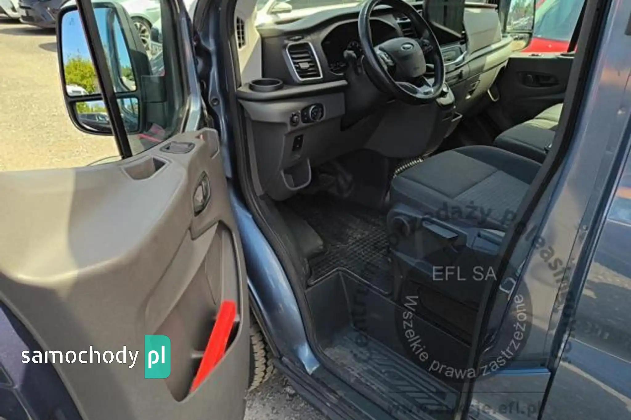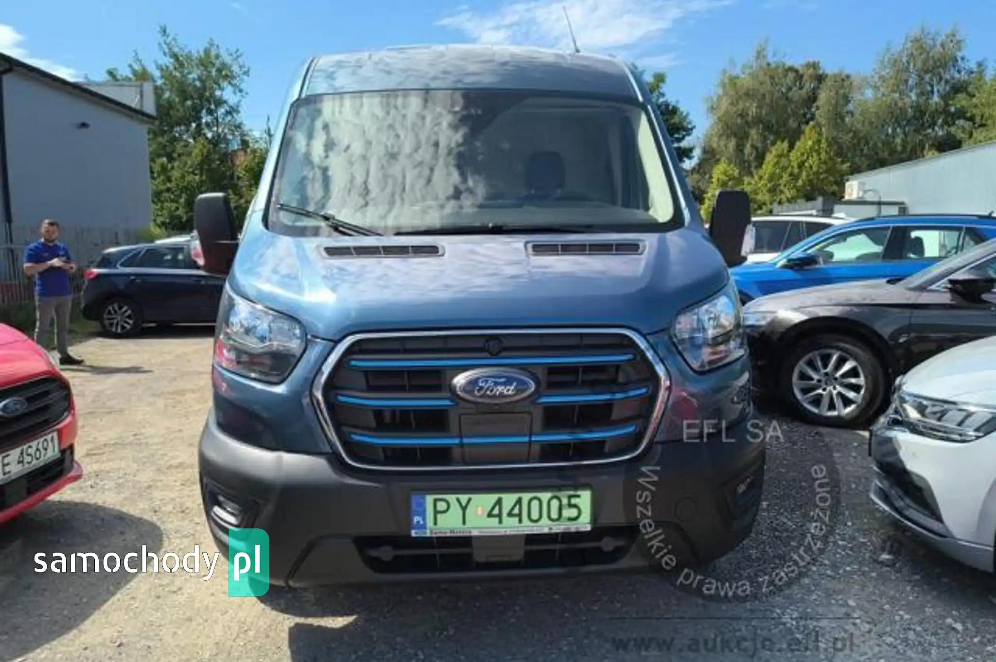 Akumulator standardowyChlapacze z tyłuCollision Mitigation System - system zapobiegania kolizjom z funkcją automatycznego hamowaniaCzujniki parkowania - przednie i tylneDach średniDrzwi boczne przesuwne, praweDrzwi tylne dwuskrzydłowe, kąt otwarcia ok. 180° z ogranicznikiem przy 90°ESC - elektroniczny układ stabilizacji toru jazdyFelgi stalowe 16 z ogumieniem 235/65Fotel kierowcy regulowany w 4 kierunkachFotel pasażera - regulacja odcinka lędźwiowegoFotele przednie podgrzewaneFunkcja ostrzegania o hamowaniu awaryjnym (EBW)Funkcja przypominająca o konieczności zapięcia pasów bezpieczeństwaGniazdo zasilania – 2 x 12VGwarancja na pojazd - 2 lataHamulce – tarczowe z przodu i z tyłuHamulec elektryczny, postojowyImmobilizer PATSKabel do ładownia ze złączem trójfazowym - długość 8mKierownica PremiumKlamki drzwi – w kolorze tworzywaKlimatyzacja automatyczna EATC z systemem nawigacji satelitarnej z systemem multimedialnym SYNC4,Kolumna kierownicy – z regulacją w dwóch płaszczyznachKołpaki kół pełneKomputer pokładowyKonsola podsufitowaKrata wlotu powietrza przednia – w kolorze tworzywa z niebieskimi listwami,Listwy boczne szerokie - w kolorze tworzywaLKA - Lane Keeping Aid - system kontroli pasa ruchuLKW - Lane Keeping Warning - system ostrzegania przed niezamierzonym zjechaniem z pasa ruchuLusterka boczne elektrycznie regulowane i podgrzewaneLusterka boczne z soczewkami eliminującymi martwe pole widzenia i wbudowanymi kierunkowskazamiModem FordPass ConnectNagrzewnica – recyrkulacjaOgranicznik prędkości - 90 km/hOświetlenie przedziału ładunkowegoOświetlenie w kabinie – lampki w podsufitce, z funkcją stopniowego wygaszania oraz do czytania mapOtwieranie pokrywy silnika kluczykiemPasy bezpieczeństwa – 3-punktowe bezwładnościowe (wszystkie siedzenia)Podłoga przedziału ładunkowego wyłożona winylemPodłokietnik kierowcyPodsufitka – w kabinie - formowanaPoduszka powietrzna - kierowcyPrzegroda polimerowa, bez oknaPrzekładnia głównaPrzestrzeń ładunkowa – zaczepy do mocowania ładunku zgodne z normą DIN 75410Przycisk rozrusznika FordPowerReflektory – automatyczne włączanie/wyłączanieReflektory – regulacja ustawieniaReflektory – światła do jazdy dziennejReflektory halogenoweSchowek pod fotelem pasażeraSchowek podręczny z drzwiczkami, zamykany na zamek, mieszczący teczki formatu A4Schowki w przednich drzwiachStolik rozkładany z fotela pasażeraSystem kontroli obciążenia pojazdu (LAC)System kontroli ryzyka wywróceniu pojazdu (RSC)Szyba przednia podgrzewana QuickclearSzyby – elektrycznie sterowane szyby przednich drzwi z funkcją otwierania szyby po stronie kierowcyŚwiatła przednie przeciwmgielneTapicerka materiałowaTempomatUchwyt pomocniczny - na słupku BUchwyty (2) na kubki w desce rozdzielczejUkład foteli przednich 1+2Układ hamulcowy dwuobwodowy, wspomaganie z samoczynną regulacją i układem ABSUkład poprawiający stabilność na zakrętach (CC)Układ ułatwiający ruszanie pod górę (HSA)Układ wspomagania awaryjnego hamowania (EBA)Układ wspomagania kierownicy elektryczny (EPAS)Wybór trybu jazdyWycieraczki przednie - automatyczne z czujnikiem deszczuWycieraczki przednie – zmienna częstotliwość pracy, spryskiwacz elektrycznyWykładzina podłogi w kabinie, gumowa, łatwa w czyszczeniuZamek centralnyZamki drzwi – akustyczna sygnalizacja niedomkniętych drzwi przy zdalnym zaryglowywaniuZamki drzwi – konfiguracja zamykania nr 1, 2-stopniowe odryglowywanieZamki drzwi – samoczynne ryglowanie po ruszeniu z miejscaZawieszenie przednieZawieszenie tylne - wielowahaczoweZderzak przedni - górna część w kolorze nadwozia, dolna część w kolorze tworzynaZderzak tylny – w kolorze tworzywa, ze zintegrowanym stopniemKoło zapasowe - pełnowymiarowe z zestawem narzędziLakier metalik