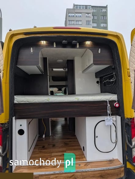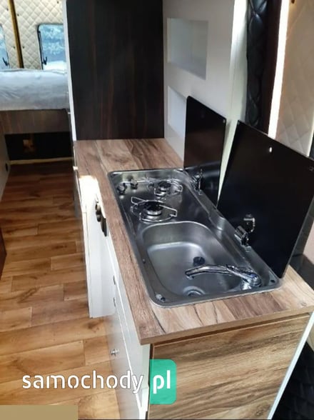 - Miejsce do spania dla 3 osób. Materac podwójny 125 cm szerokości na 190 cm długości - wysokiej jakości. Trzecia osoba miejsce do spania tworzone przez siedzenie pasażera, stół i siedzenie tylne, tutaj stosowany materac dmuchany.