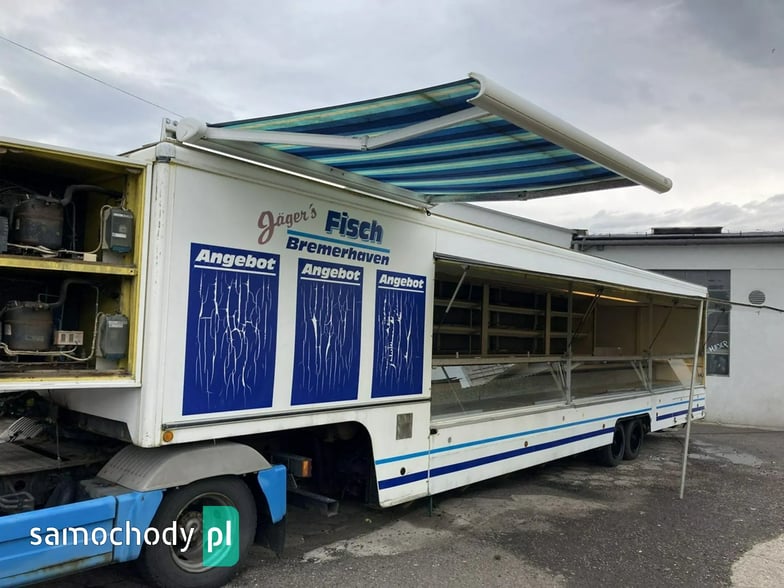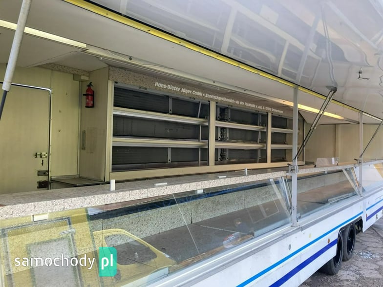 Naczepa Gastronomiczna Borco Hohns do sprzedaży wędlin ryb serów,oraz innego handlu bok otwierany,lada chłodnicza,agregat chłodniczy,z tyłu regały na całości chłodzone,osobne miejsce chłodnicze zamykane,markiza,regały,kącik socjalno sanitarny,oświetlenie,Wystawiam Fakturę Vat Marża.,cena za naczepę,W ofercie inne pojazdy. Automilian.pl