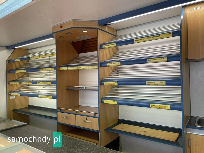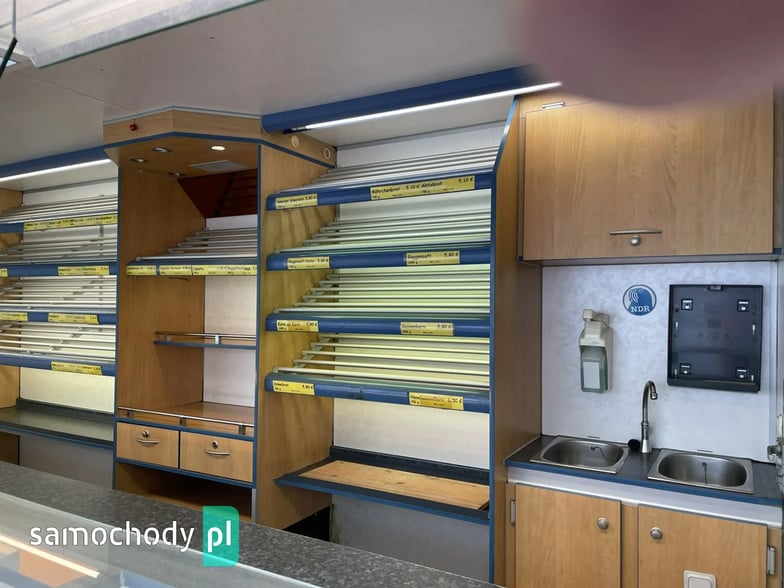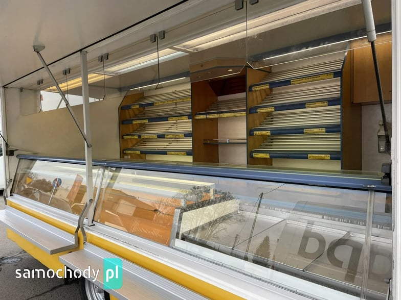 Niemieckiej firmy Borco-Hohns,Wyposażenie: bok otwierany , lada sprzedawcy panoramiczna ,witryna wystawowa chłodnicza 1,30 m,wiatrochron, uchwyt na papier,podłoga przeciwpoślizgowa, atrakcyjne oświetlenie oraz zabudowa, kącik socjalno-sanitarny-zlewozmywak dwu komorowy, woda ciepła i zimna,DMC 2500 kg.Stan Dobry,W ofercie zobacz inne pojazdy. Automilian.pl