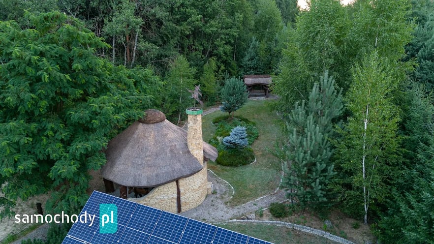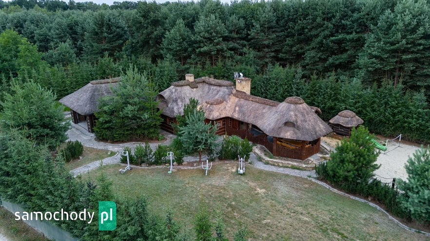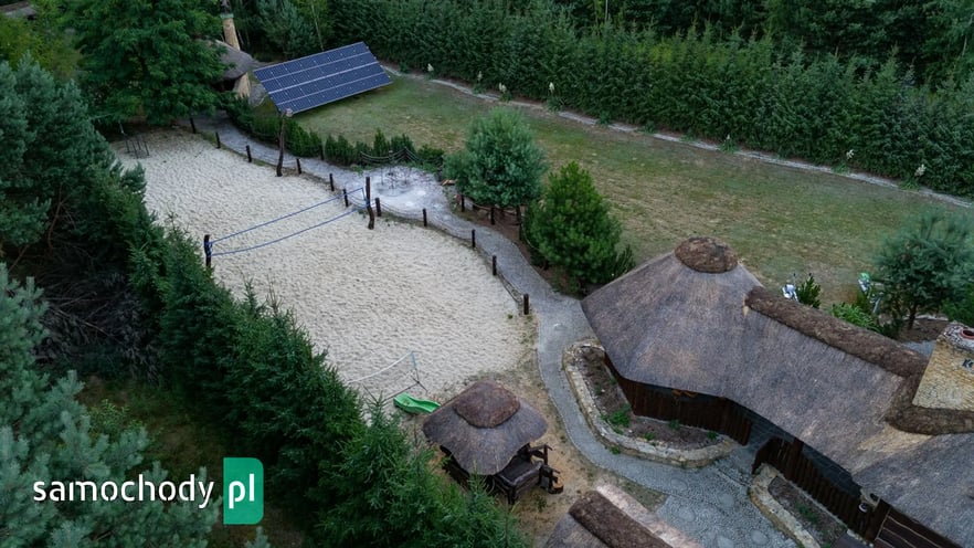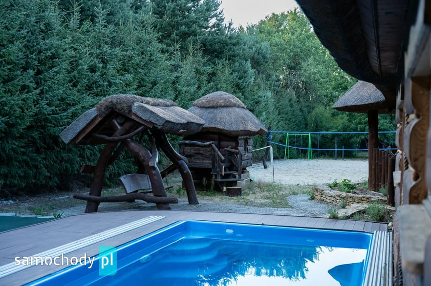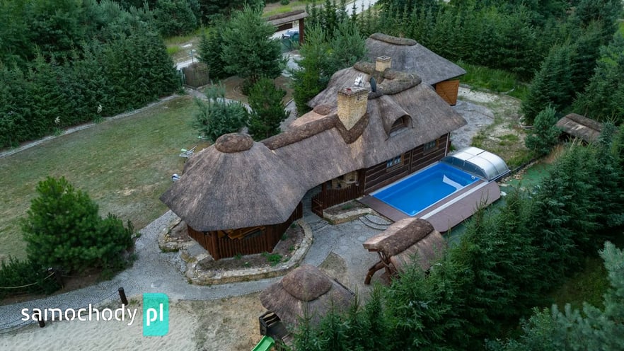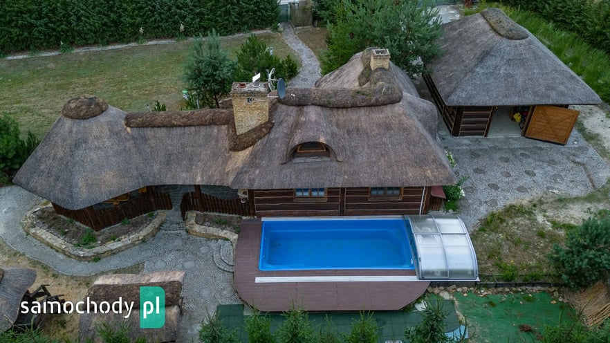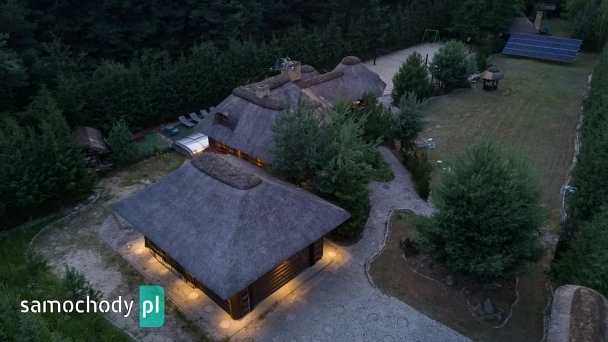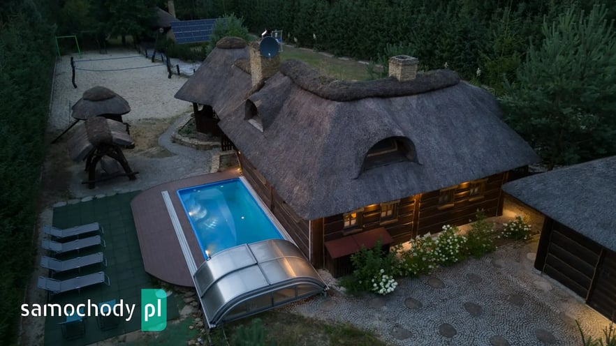 Dom z basenem, wędzarnią, boiskiem, fotowoltaika, drewniany strzecha