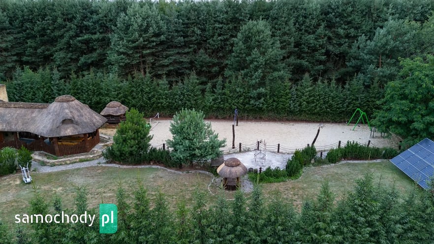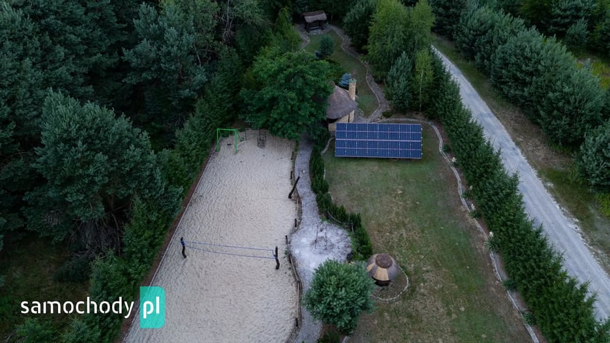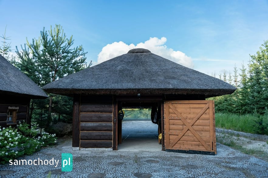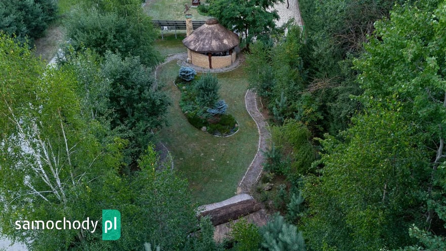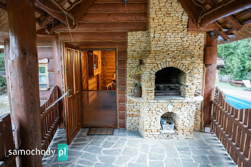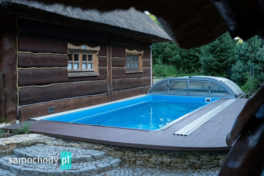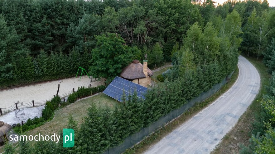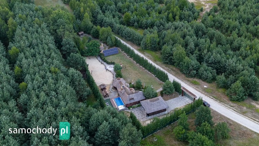 Dom z basenem, wędzarnią, boiskiem, fotowoltaika, drewniany strzecha