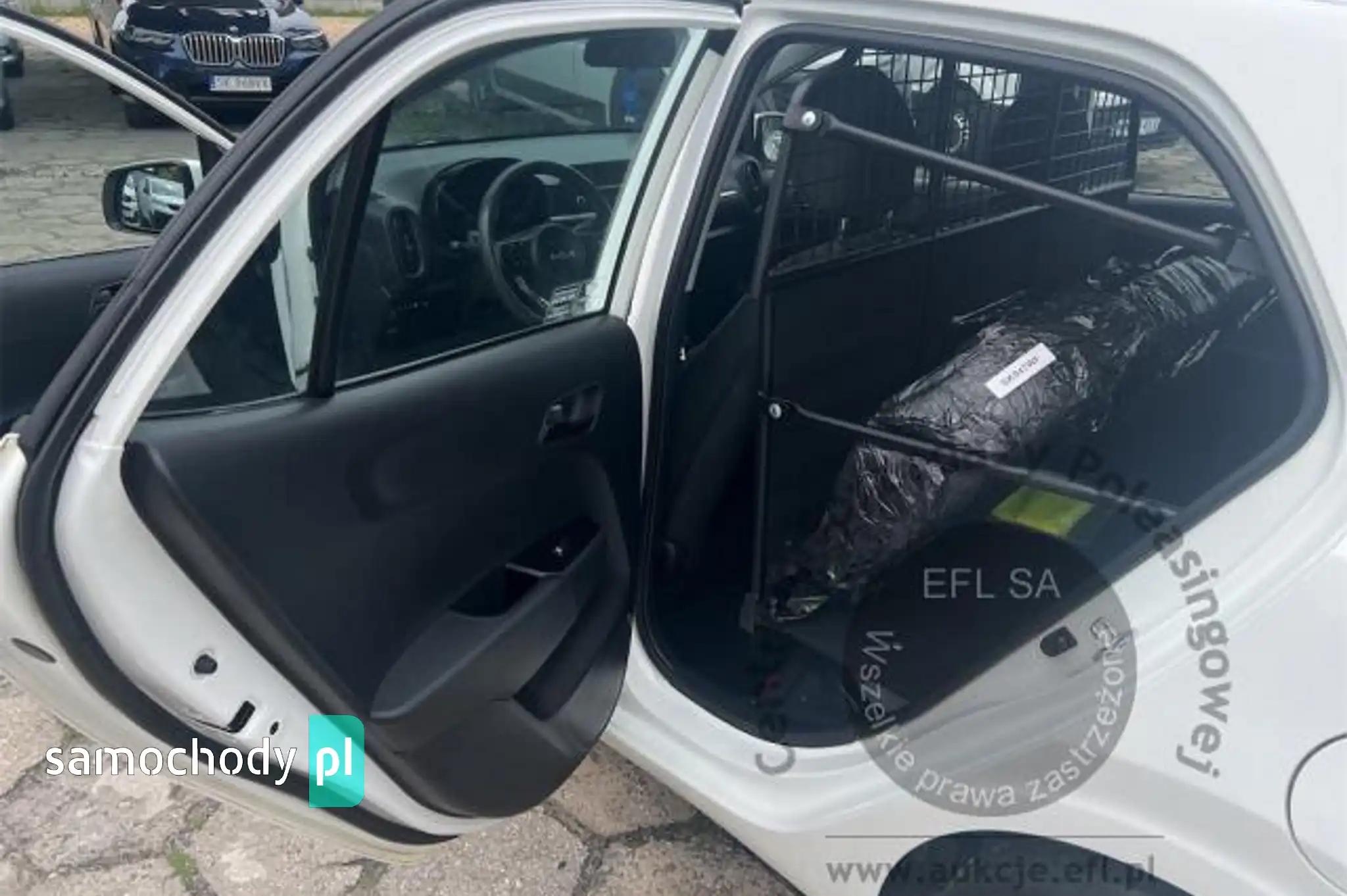 ABS - system zapobiegający blokowaniu się kół podczas hamowaniaAlarmAtrapa wlotu powietrza w kolorze czarnym, obramowanie lakierowane w kolorze srebrnymAutomatyczne włączanie światełBluetooth z zestawem głośnomówiącymCzujnik ciśnienia w oponachEBD - elektroniczny rozdział sił hamowaniaEl. podnoszenie szyb przód/tył z auto góra/dół po stronie kierowcyESC - układ stabilizacji toru jazdyESS - automatyczne włączanie świateł awaryjnych podczas gwałtownego hamowaniaFelgi stalowe 14 z ogumieniem 175/65Fotel kierowcy z mechaniczną regulacją wysokościGniazdo 12V w konsoli centralnejHAC - system wspomagający pokonywanie podjazdówImmobilizerKIA Gwarancja - 7 lat 150 000 kmKierownica wielofunkcyjna, gniazdo USBKlamki w kolorze nadwoziaKlamki zewnętrzne w kolorze nadwoziaKlimatyzacja manualnaKolumna kierownicy regulowana manualnie w pionieKoło zapasowe, dojazdoweKomputer pokładowy z wyświetlaczem 2,6 calaKonsola centralna z miejscami na kubkiLakier uniLusterka boczne regulowane elektrycznie i podgrzewaneLusterka boczne w kolorze nadwoziaNapinacze pasów bezpieczeństwaOsłony przeciwsłoneczne z lusterkamiOświetlenie przestrzeni bagażowejPoduszki powietrzne 6 sztuk (czołowe poduszki kierowcy i pasażera, boczne poduszki - przód, kurtyny)Pokrywa przestrzeni bagażowejRadio MP3, RDS, DAB, 2 głośnikiSystem bezpiecznego mocowania fotelików dziecięcych, zabezpieczenie przed otwarciem drzwi tylnychSystem EcoDynamics - funkcja automatycznego wyłączania silnikaSzyby barwioneŚwiatła do jazdy dziennejTapicerka materiałowaTermometr zewnętrznyTVB - System poprawiający zwrotność pojazduTylna kanapa składana, dzielona 60:40Tylny spojlerVSM - system podpowiedzi ruchu kierownicyWskaźnik wyboru optymalnego bieguWspomaganie kierownicy - elektryczne, progresywneZamek centralny z pilotemZderzaki w kolorze nadwoziaHomologacja ciężarowa, 2-miejscowaInstalacja gazowa LPG BRCŚwiatła przeciwmgielne