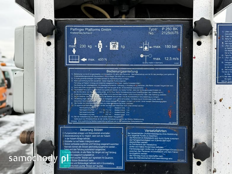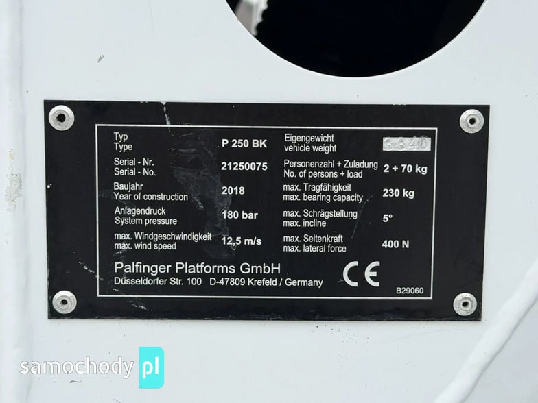 DANE TECHNICZNE PODNOŚNIKA PALFINGER P 250 BK:
