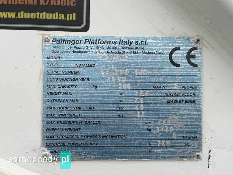 PARAMETRY TECHNICZNE PODNOŚNIKA PALFINGER P200A SMART