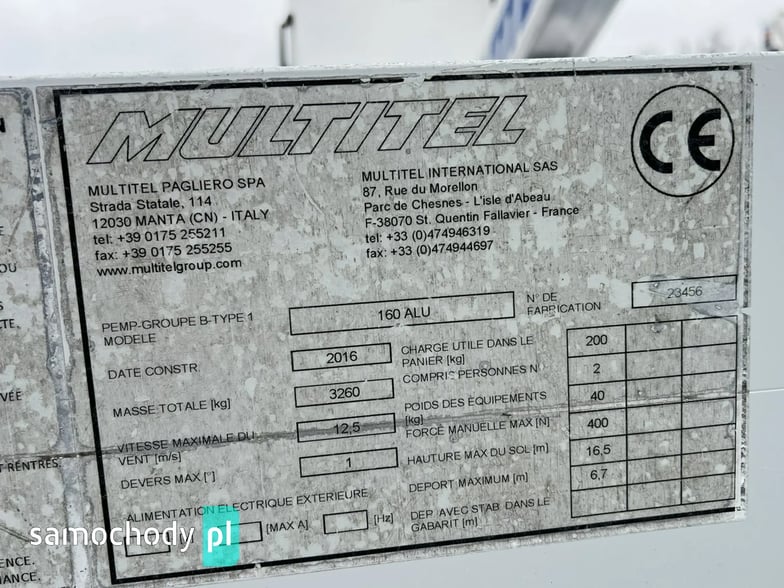 - Podnośnik Koszowy Multitel 160 ALU