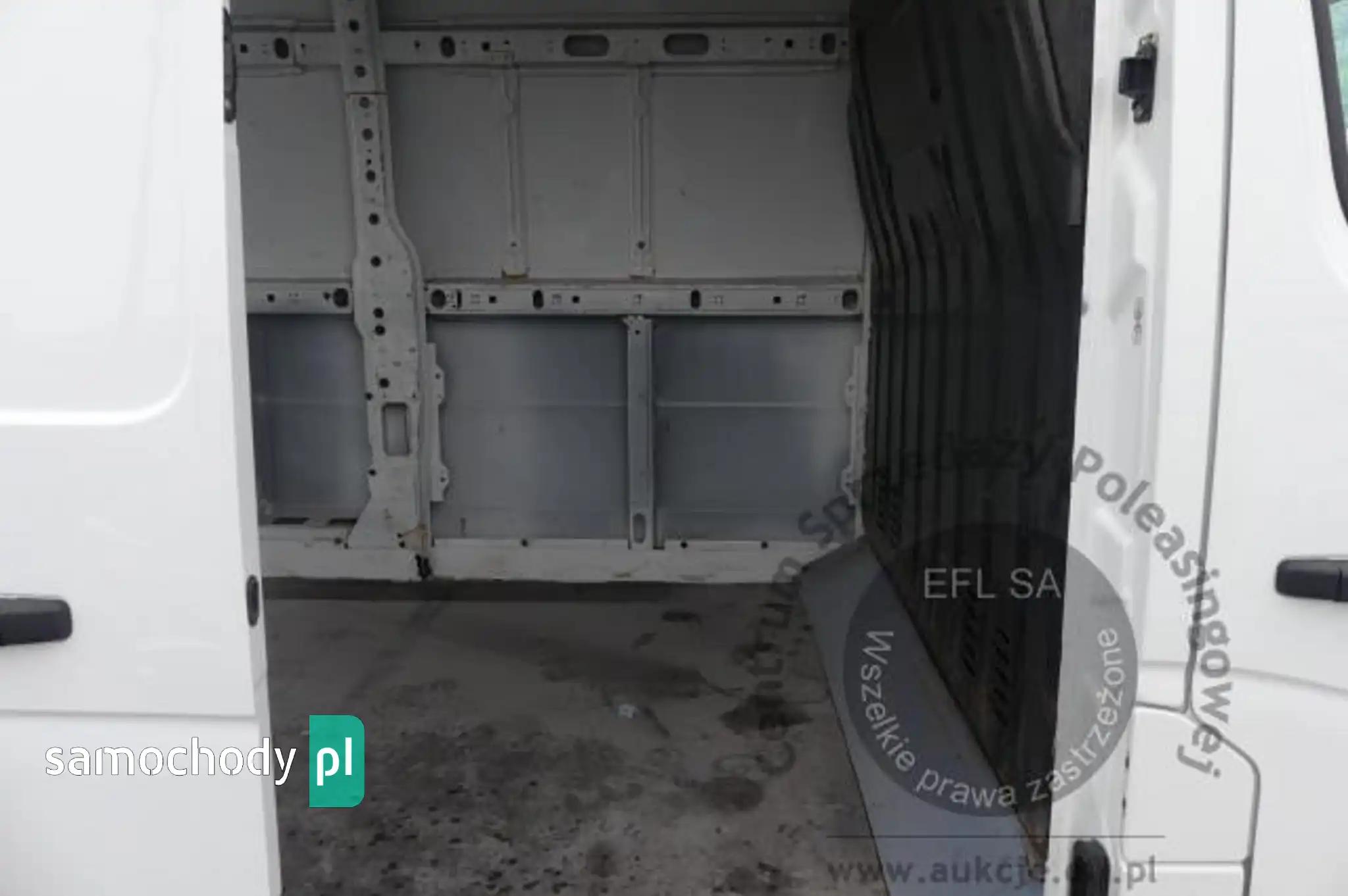 Deska rozdzielcza i poszycia tapicerskie wnętrza pojazdu – miejscowe zarysowania z ubytkami tworzywa. Poszycia tapicerskie foteli, wykładzin podłogi i podsufitki – miejscowo zabrudzone. Układ klimatyzacji wymaga sprawdzenia szczelności, uzupełnienia czynnika roboczego oraz oczyszczenia parownika i układu dolotowego powietrza do wnętrza. Tapicerka drzwi lewych przednich - głębokie zarysowania. Tapicerka drzwi prawych przednich - połamane mocowanie kieszeni dolnej. Zakodowany radioodtwarzacz. Aktywny alert "skontroluj poduszkę powietrzną".Brak wyłożeń tapicerskich ścian bocznych przestrzeni ładunkowej. Brak wyłożeń tapicerskich drzwi przesuwnych i drzwi tyłu nadwozia. Liczne zagięcia i zarysowania poszyć przestrzeni ładunkowej. Połamana nakładka tylnego progu załadunkowego. Wymiary przestrzeni ładunkowej: długość ok 3600mm, szerokość ok 1750mm, wysokość ok 1850mm.