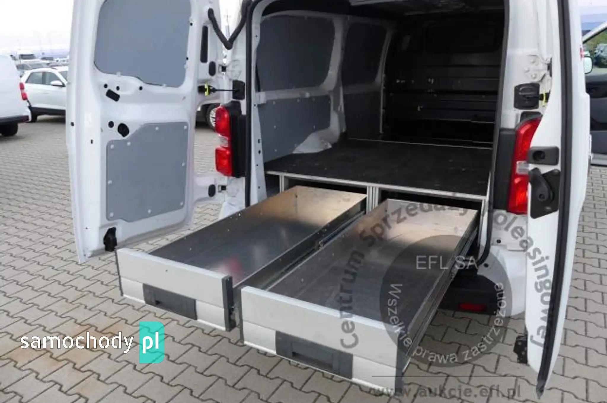 Deska rozdzielcza i poszycia tapicerskie wnętrza pojazdu – miejscowe zarysowania z ubytkami tworzywa. Poszycia tapicerskie foteli, wykładziny podłogi i podsufitki – miejscowe zabrudzenia. Układ klimatyzacji wymaga sprawdzenia szczelności, uzupełnienia czynnika roboczego oraz oczyszczenia parownika i układu dolotowego powietrza do wnętrza. Brak gaśnicy oraz trójkąta ostrzegawczego.Przestrzeń ładunkowa: długość ok. 2650mm, stwierdzono zabudowę w postaci dwóch szuflad podłogowych.