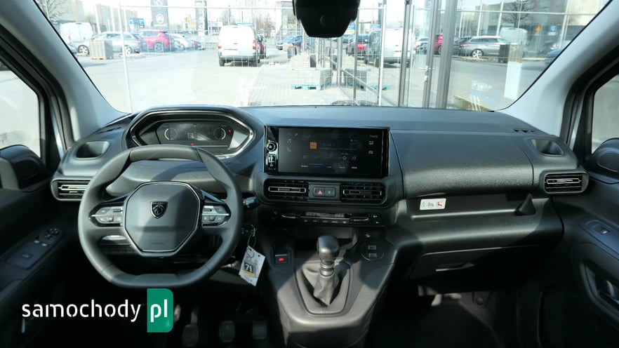 6 punktów mocowania ładunku w podłodze, 6 uchwytów w podłodze do zabezpieczenia ładunku w przestrzeni ładunkowej, Boczne listwy czarne, nielakierowane, Czujniki parkowania tył, Czujniki spadku ciśnienia w ogumieniu pośrednie, Dodatkowy kluczyk bez pilota, centralny zamek, Drzwi tylne dwuskrzydłowe blaszane, ESP (ABS + AFU + ESC + ASR + Hill Assist), Felgi stalowe szare 16" półkołpaki, Fotel kierowcy KOMFORT, Hamulec postojowy ręczny, Kierownica wielofunkcyjna regulowana w dwóch płaszczyznach, Klamki wewnętrzne chromowane, Klimatyzacja manualna, Obudowy lusterek bocznych czarne, nielakierowane, Pakiet Safety, Pięć poduszek bezpieczeństwa (czołowa pasażera, boczne i kurtynowe dla kierowcy i pasażera w R1), Poduszka bezpieczeństwa czołowa dla pasażera, Półka podsufitowa, Stacja dokująca do Smarthphon-a (2 x USB do ładowania; rozpoznawanie głosu; streaming Audio), System Peugeot Connect SOS & Assistance, Szyby boczne przednie (R1) sterowane elektrycznie; Lusterka zewnętrzne sterowane elektrycznie, podgrzewane, Wycieraczki sterowane manualnie z systemem Magic Wash; Automatyczny włącznik reflektorów (czujnik zmierzchu), Wykładzina z tworzywa na podłodze w kabinie kierowcy, Wykładzina z tworzywa na podłodze w przestrzeni ładunkowej,