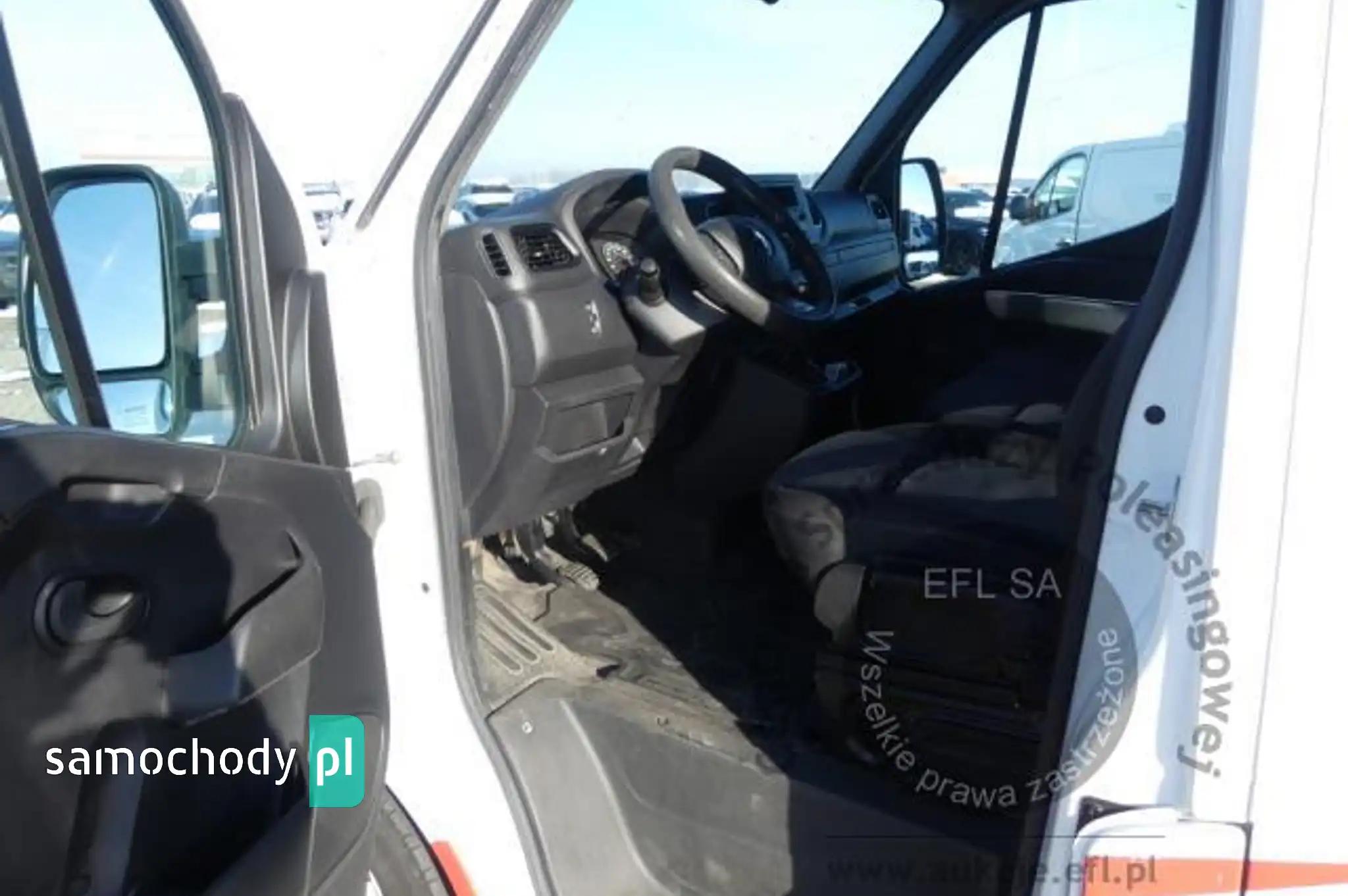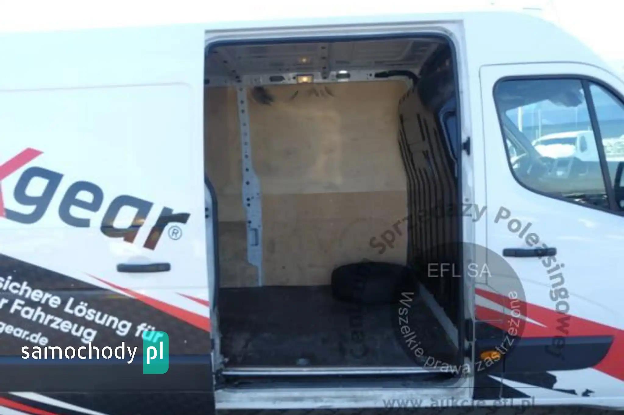 Deska rozdzielcza, poszycia tapicerskie drzwi i wnętrza pojazdu – miejscowe zarysowania z ubytkami tworzywa. Deska rozdzielcza - uszkodzona kratka nawiewu w części środkowej, niefabryczny element, miejscowe zarysowania z ubytkiem tworzywa. Koło kolumny kierowniczej - miejscowe przetarcia i zarysowania. Dźwignia zmiany biegów - przetarcia i zarysowania powierzchni tapicerowanej. Poszycia tapicerskie drzwi - zarysowania z ubytkiem tworzywa. Schodek wejściowy lewy - miejscowe zarysowania i odkształcenia, częściowy brak elementów mocujących. Poszycia tapicerskie fotela kierowcy, kanapy pasażerów, wykładziny podłogi i podsufitki – miejscowo zabrudzone. Fotel kierowcy - miejscowe przetarcia i odkształcenia, uszkodzone mocowanie podłokietnika. Kanapa pasażerów - miejscowe przetarcia i odkształcenia. Podsufitka - miejscowe odkształcenia i zarysowania. Wykładzina podłogi - drobne miejscowe rozdarcia, zarysowania i odkształcenia. Układ klimatyzacji wymaga sprawdzenia szczelności, uzupełnienia czynnika roboczego oraz oczyszczenia parownika i układu dolotowego powietrza do wnętrza.Przedział bagażowy: wymiary przestrzeni ładunkowej ok: dł. – 3750mm; wys. – 1900mm, szer. - 1700mm. Ściana grodziowa przestrzeni ładunkowej – zarysowania, miejscowe zagięcia. Wnęki kół tylnych - zabudowane sklejką, miejscowe zarysowania. Pokrycia wewnętrzne drzwi i ścian bocznych /sklejka/ – miejscowe zarysowania, pęknięcia, obtarcia pokryć, zabrudzenia. Podłoga – /sklejka/ zarysowania, obtarcia powierzchni płyty podłogi, miejscowe ubytki tworzywa, odkształcenia, zabrudzenia. Elementy lakierowane przestrzeni ładunkowej - odpryski, zarysowania, miejscowe zagięcia poszyć.