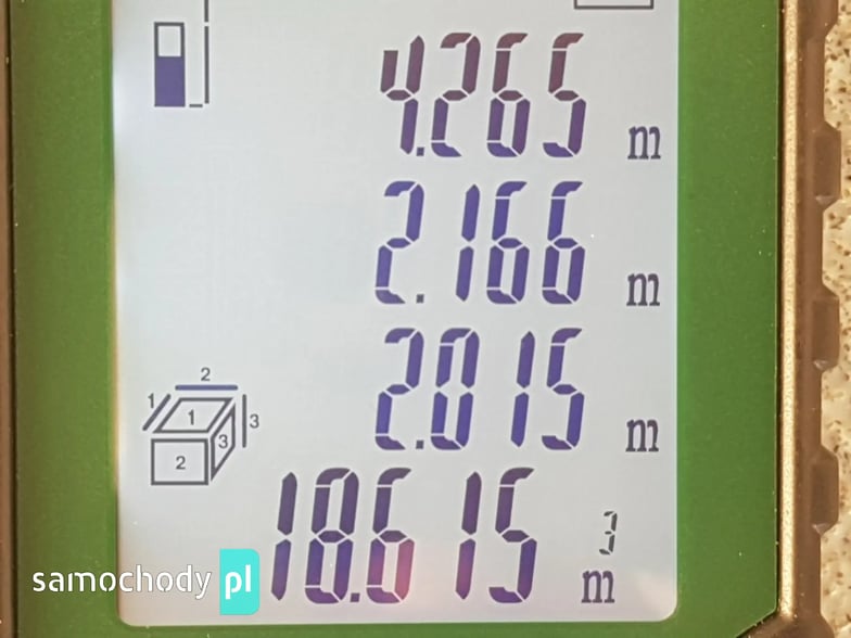 Wymiary zabudowy: Długość: 4,26 m wewnątrz. Szerokość: 2,16 m wewnątrz. Wysokość: 2,01 m wewnątrz. 8-Euro palet. Objętość zabudowy: 18,61 m3. Zabudowa otwierana: 2 x drzwi tył + drzwi boczne. Rozkładany stopień wejścia tył + bok kontenera. Oświetlenie wewnątrz zabudowy. Uchwyty do mocowania ładunku. Aluminiowe boczne osłony.