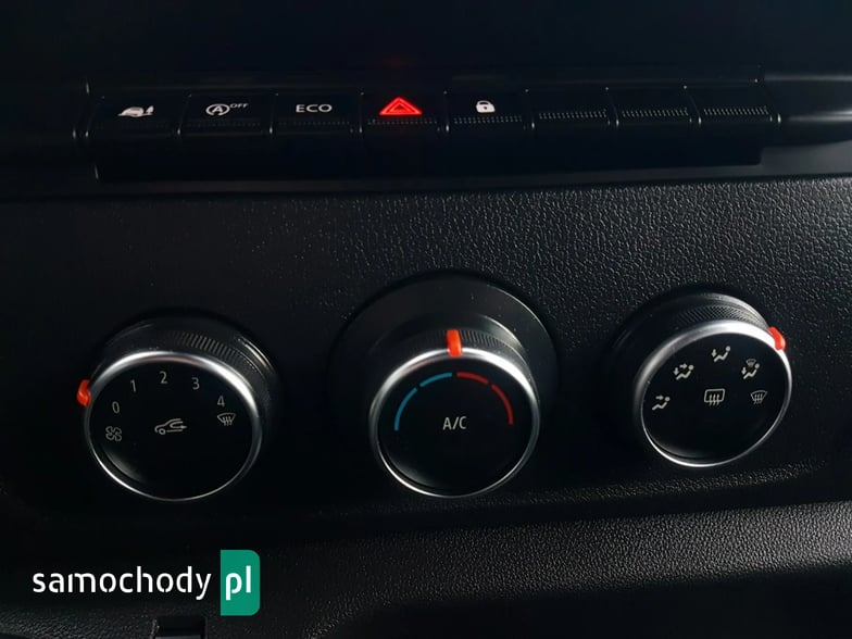 Klimatyzacja. Wspomaganie kierownicy. Centralny zamek. Immobilizer. Komputer pokładowy. ABS. Poduszka powietrzna kierowcy. System kontroli trakcji. Elektryczne lusterka. Elektryczne szyby. Podgrzewane lusterka. Oryginalne Radio mp3, usb,aux Renault ze sterowaniem przy kierownicy + Bluetooth. System start/stop. System : droga utwardzona – droga gruntowa. System ECO. Kolorowa kamera cofania. Regulacja wysokości świateł. Regulacja położenia kierownicy. Regulacja wysokości fotela kierowcy. Regulacja lędźwiowa fotela kierowcy. Regulacja wysokości pasów bezpieczeństwa. Schowki w przednich drzwiach. Schowek pod fotelem pasażera. Kierunkowskazy w lusterkach. Szerokie lusterka. Zegarek. Termometr zewnętrzny. Obrotomierz. Podłokietnik kierowcy. Stolik rozkładany z fotela pasażera. Schowki w desce rozdzielczej. Wysuwana półka z deski rozdzielczej z uchwytem na kubek. Automatyczny włącznik świateł – światła jazdy dziennej Led. Niklowe dodatki. Koło zapasowe. Kabina 3 osoby. Trzecie światło stop. Plastikowe tylne nadkola. Owiewka dachowa + boczne. Koła R16C. Światła boczne obrysowe. Atermiczne szyby.