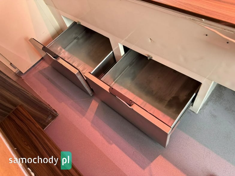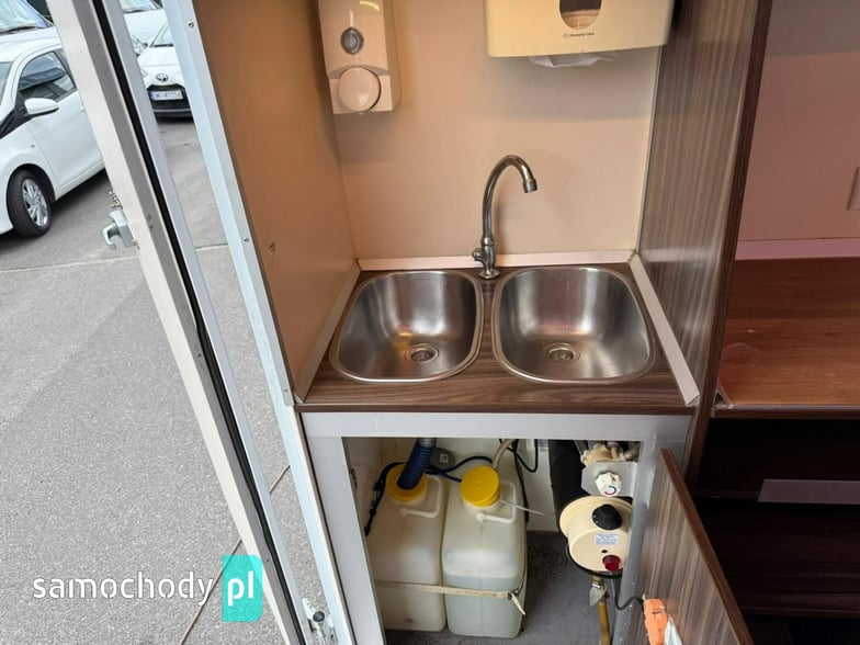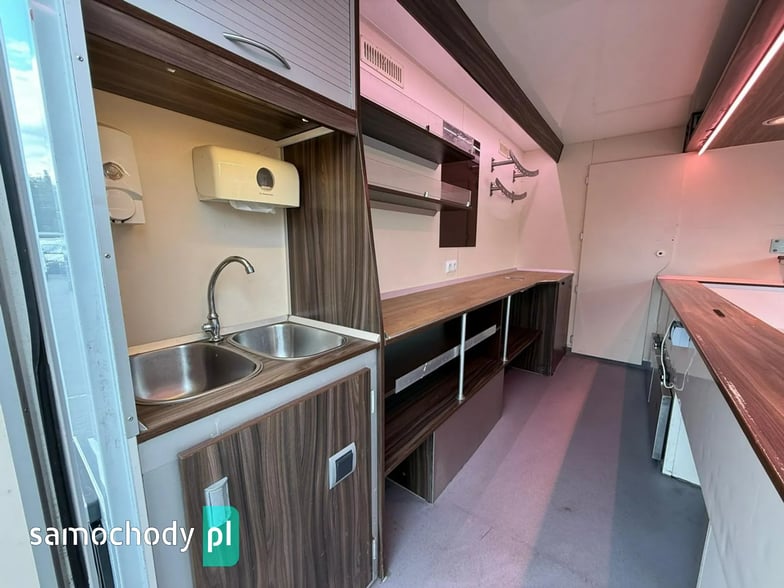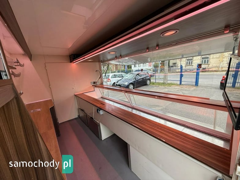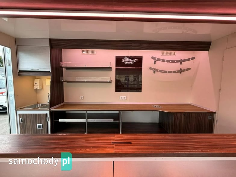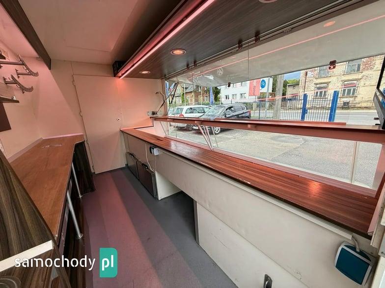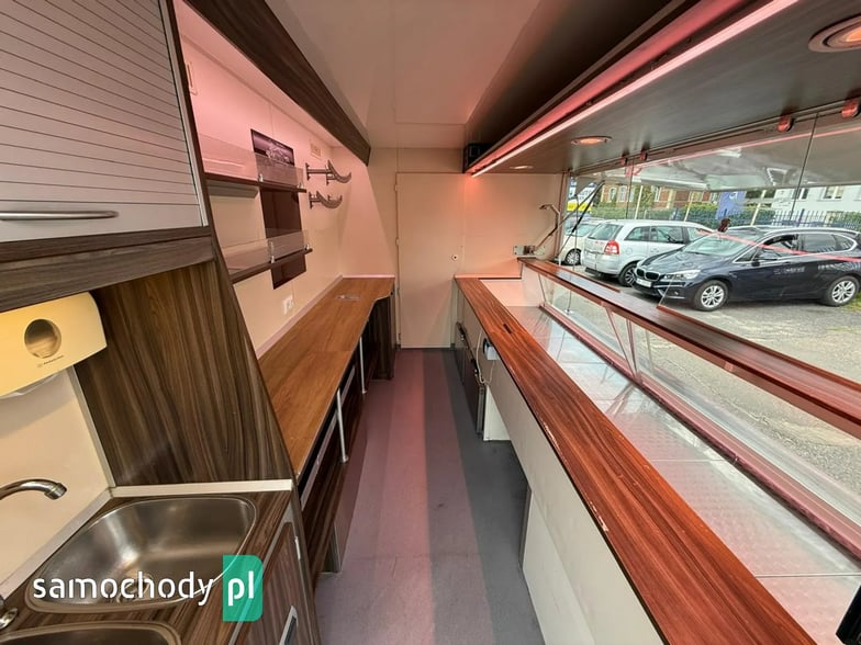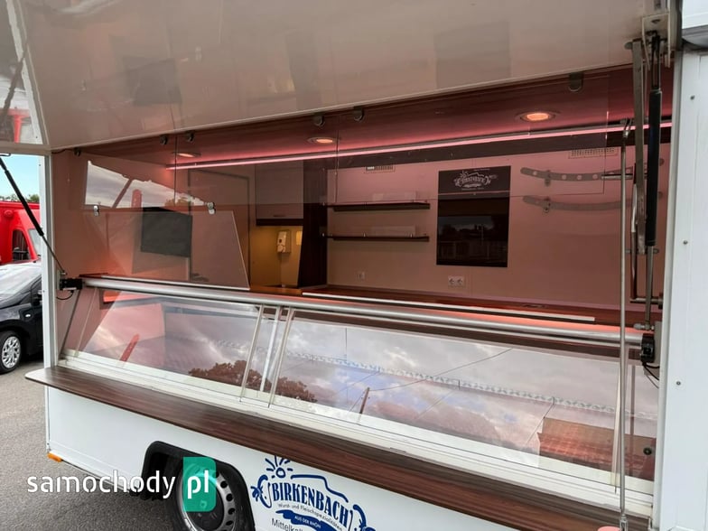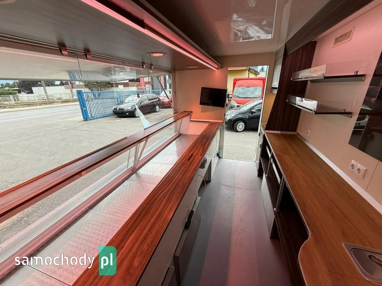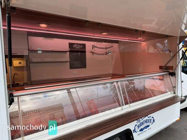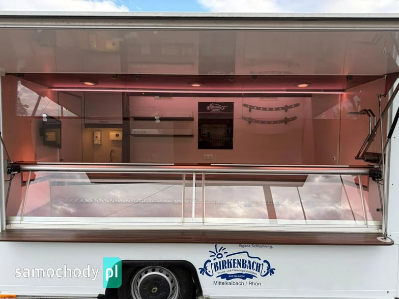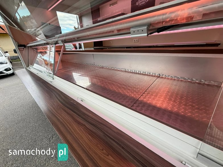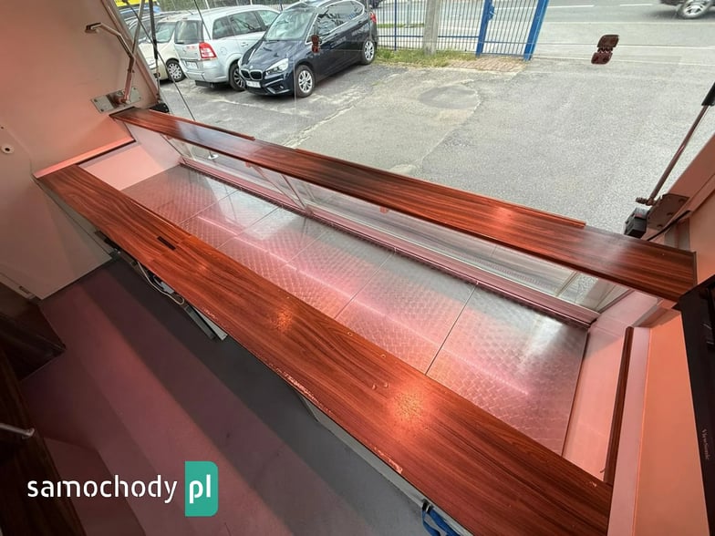 Niemieckiej firmy ,Wyposażenie: bok otwierany elektrycznie, lada sprzedawcy chłodnicza panoramiczna 3,60 długa, pod ladą 2 duże szuflady chłodnicza,własne zasilanie 12V-230V akumulatory żelowe sztuk + panele fotowoltaiczne+ przetwornice,regały,haki,pułki,uchwyt na papier,przejście do szoferki,wiatrochron,podłoga przeciwpoślizgowa, atrakcyjne oświetlenie oraz zabudowa, kącik socjalno-sanitarny-zlewozmywak dwu komorowy, woda ciepła i zimna,DMC 3500.na prawo jazdy b ,
