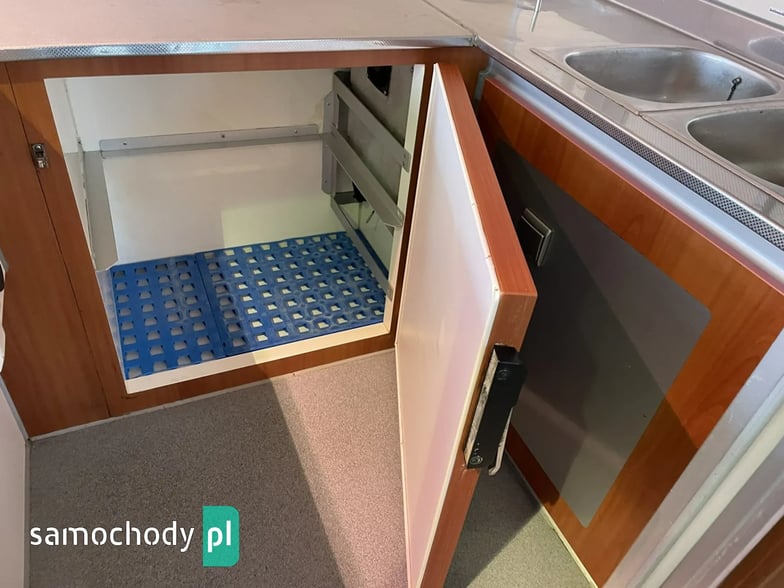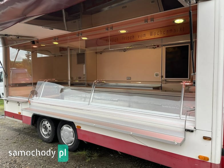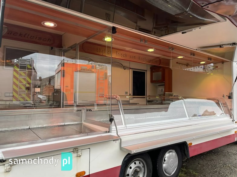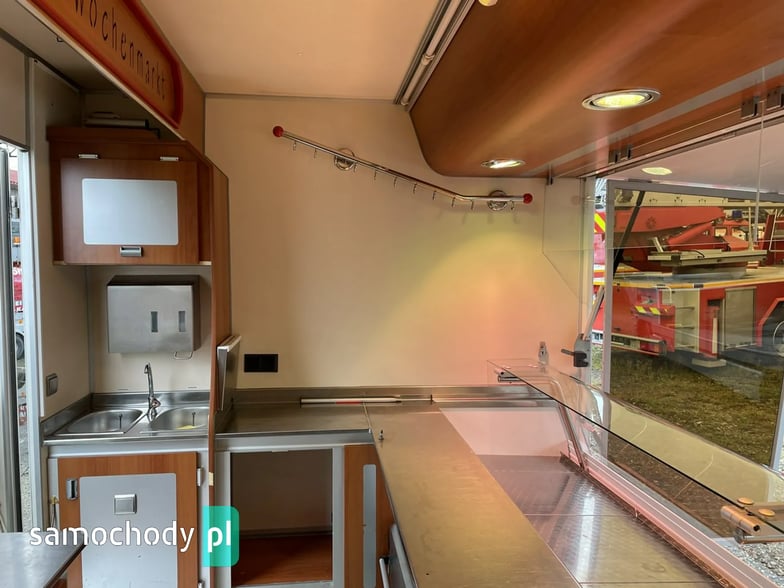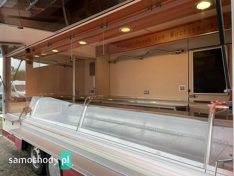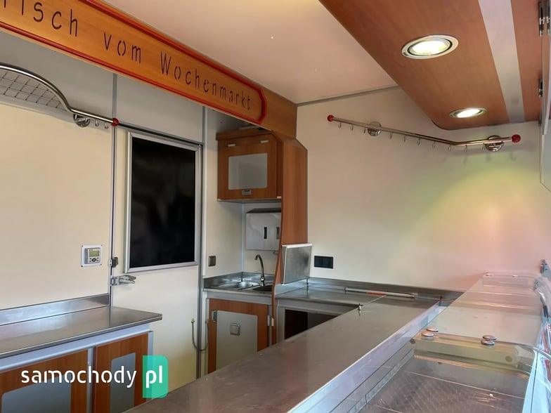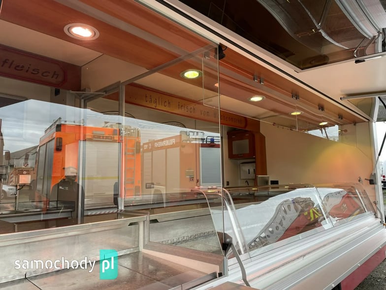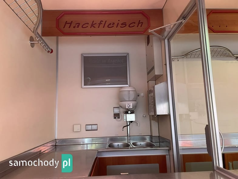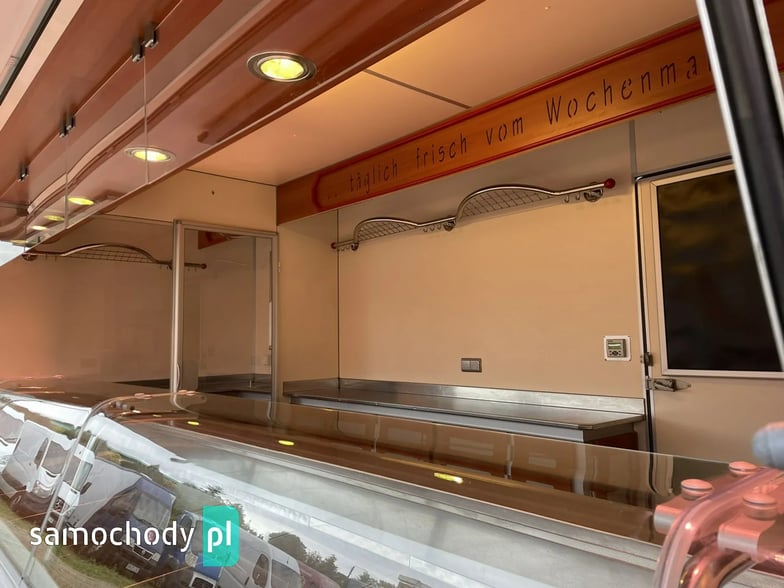 ,bok otwierany ,lada sprzedawcy panoramiczna,agregaty chłodnicze,pod ladą duże szuflady,regały,pułki,haki,pinek,drugie pomieszczenie na mięso,Klimatyzacja.dzwonek informacyjny,podłoga przeciwpoślizgowa,wiatrochron czołowy oraz boczny,kamera cofania,atrakcyjne oświetlenie zabudowy,kącik socjalno-sanitarny-zlewozmywak dwu komorowy,woda ciepła i zimna,W ofercie inne pojazdy,Stan Bardzo Dobry.