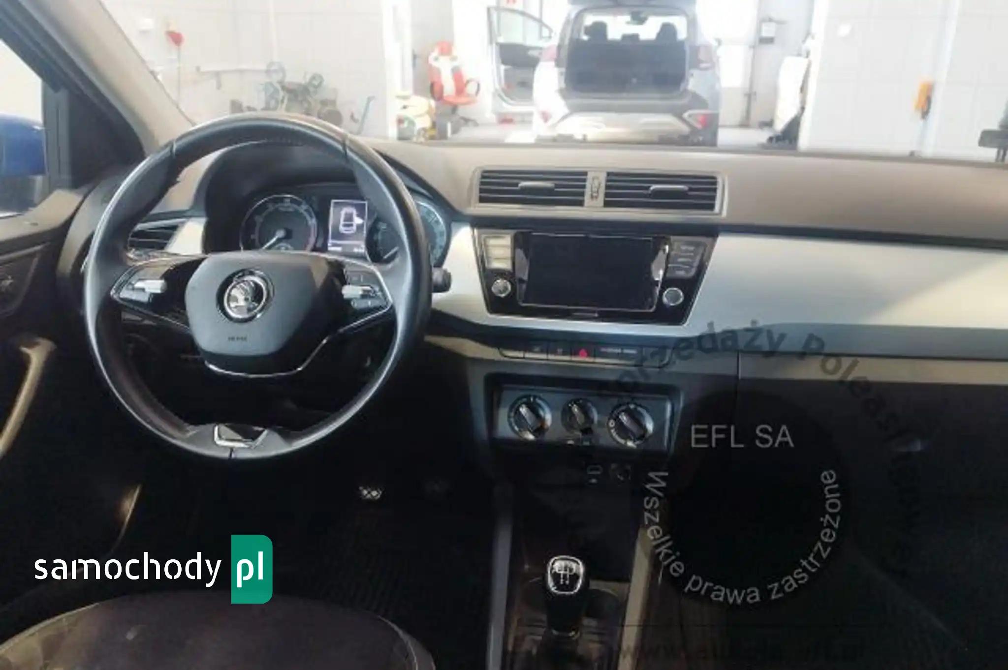 ABS + MSR + ASR + EDL + HBA + EBV + TPMACS - system pokolizyjnyBluetoothDAB+ - cyfrowy odbiór stacji radiowychEasy Light Assistant – czujnik zmierzchuElementy kontrolne nawiewów powietrza chromowaneESP - system stabilizacji toru jazdyFotel kierowcy z manualną regulacją wysokościGniazdo 12 V w konsoli środkowejGrill przedni w kolorze czarnym z chromowaną ramkąHaczyki na torbyHamulec antykolizyjny - multicollision brakeHill Hold Control - wspomaganie ruszania pod wzniesieniaImmobilizerKierunkowskazy w obudowie lusterek zewnętrznychKieszenie w oparciach foteli przednichKlamki wewnętrzne chromowaneKlimatyzacja manualnaKolumna kierownicy regulowana w pionie/poziomieLakier uniLusterka boczne i klamki drzwi w kolorze nadwoziaLusterka boczne regulowane elektrycznie i podgrzewaneOgranicznik prędkościOświetlenie bagażnikaPanel instrumentów – Ambition/Style/MC (chromowana ramka obrotomierza i prędkościomierza, komputer)Pasy bezpieczeństwa z regulacją wysokości i napinaczami - przódPodpowiedź zmiany bieguPoduszka powietrzna pasażera z dezaktywacjąPoduszki powietrzne 6 sztuk (czołowe kierowcy i pasażera, boczne - przód, kurtyny powietrzne)Przegroda wnęki nadkola – z lewej stronyPrzycisk hamulca ręcznego chromowanyRamki bocznych nawiewów powietrza chromowaneSchowek na okularySchowek w bagażniku (nad lewym nadkolem)Schowki w drzwiach - przódSkładana pokrywa nad przestrzenią bagażowąSystem Start-Stop z funkcją odzyskiwania energiiSzyby elektrycznie sterowane przednieŚwiatła do jazdy dziennej LEDTylne oparcie składane, dzieloneUchwyt na 0,5l butelkę w drzwiach tylnychUchwyt na 1,5l butelkę w drzwiach przednichUchwyt z parasolką pod fotelem pasażeraUchwyty ISOFIX na tylnych siedzeniachWspomaganie układu kierowniczego, elektromechaniczneWycieraczka szyby tylnejWycieraczki Aero szyby przedniej z regulacją częstotliwości pracyWykończenie wnętrza - AmbitionXDS+ - system wspomagania pokonywania zakrętówZagłówki z regulacją wysokościZamek centralny ze składanym kluczykiemZawieszenie sportoweZestaw do naprawy przebitej oponyAlarm z funkcją SAFEPakiet ComfortCzujnik odległości przy parkowaniu - tyłFelgi aluminiowe 15 CYGNUS z ogumieniem 185/60Fotel pasażera z manualną regulacją wysokościŚwiatła przeciwmgielnePakiet PremiumKamera ułatwiająca parkowanieKierownica 2-ramienna, skórzana, wielofunkcyjna (obsługa: radio, telefon)Komputer pokładowy z wyświetlaczem Maxi-DOTRadio Swing Plus (ekran 6,5 cala, SmartLink+, Skoda Surround, 2 dodatkowe głośniki z tyłu)