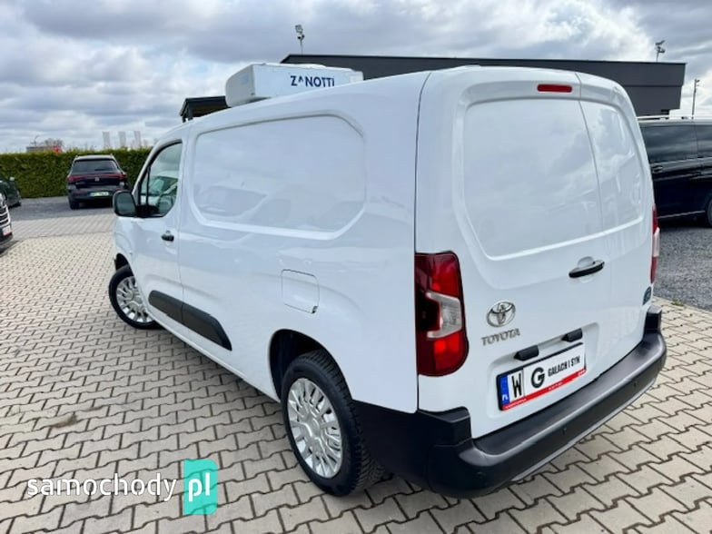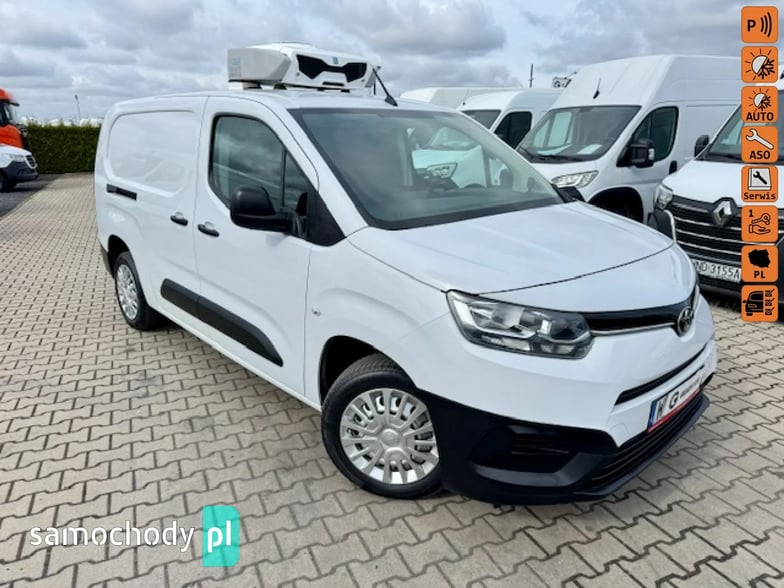 ZAKUPIONY I SERWISOWANY W POLSKIM SALONIE TOYOTA 3/2023 , oryginalna plastykowa zabudowa chłodni - mrożni + agregat firmy ZANOTTI V200 od -20st.C do +20st.C + grzanie + rozmrażanie , 91 tys.km, silnik 1,5 - 102KM , wersja DŁUGA L2H1 , 6-cio biegowy , KLIMATRONIC , TEMPOMAT , ABS, ASR, ESP, kontrola trakcji, 2 - osobowy , oryginalne radio - TABLET + CD +MP3 + TEL + BLUETOOTH , kierownica wielofunkcyjna ze sterowaniem radia , 1 x airbag, elek. szyby, elek. podgrzewane lusterka, centralny zamek + pilot + alarm, czujniki parkowania , duży komputer pokładowy, światła do jazdy dziennej , czujnik zmierzchu + czujnik deszczu , a termiczne przyciemniane zielone szyby , wspomaganie kierownicy, regulowana wysokość fotela kierowcy + podłokietnik , fabrycznie wzmocnione zawieszenie tylne , koła 16 , opony 70 % ,system eco , system start-stop , BEZWYPADKOWY , KSIĄŻKA SERWISOWA , SUPER STAN ,