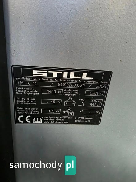 Elektryczny wózek widłowy wysokiego składowania Still FM-X14 2017r