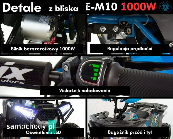 ASIX E-M10 1000W to elektryczny quad, który oferuje cichą, przyjemną i bezpieczną jazdę — idealny pierwszy quad dla młodych użytkowników oraz każdego, kto chce po prostu dobrze się bawić bez hałasu i spalin.