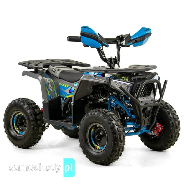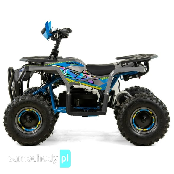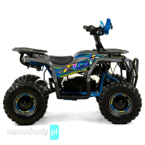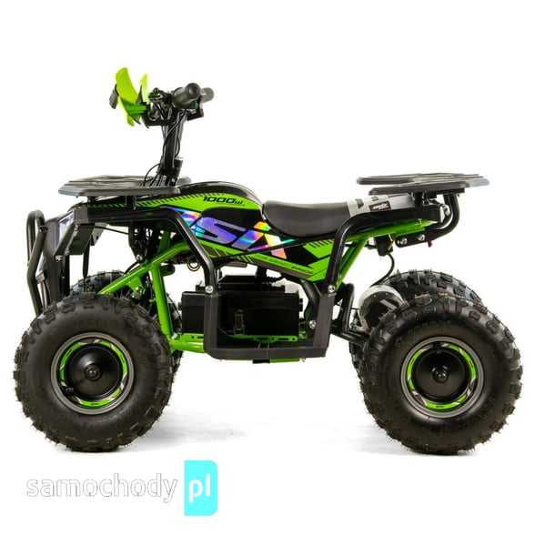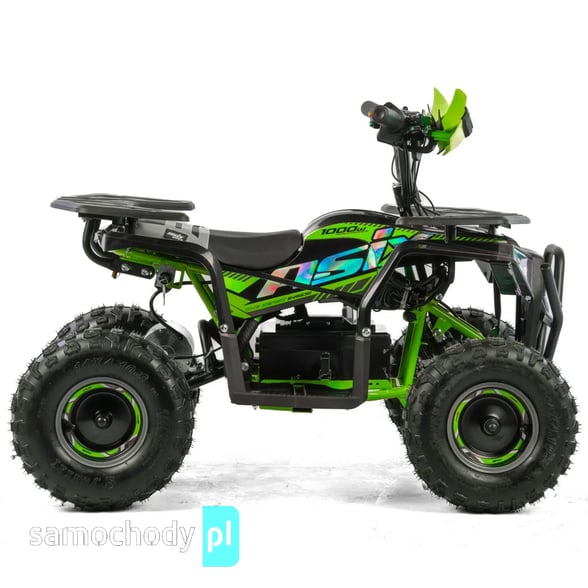 Quad napędzany jest elektrycznym silnikiem o mocy 1000 W, który zapewnia płynną, przewidywalną moc i przyspieszenie. Brak klasycznej skrzyni biegów i sprzęgła oznacza, że jazda jest maksymalnie prosta — wystarczy dodać gaz, aby ruszyć, a silnik reaguje natychmiastowo.