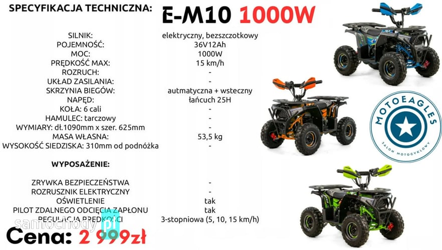 Wymiary: standardowe dla quada elektrycznego 1000 W