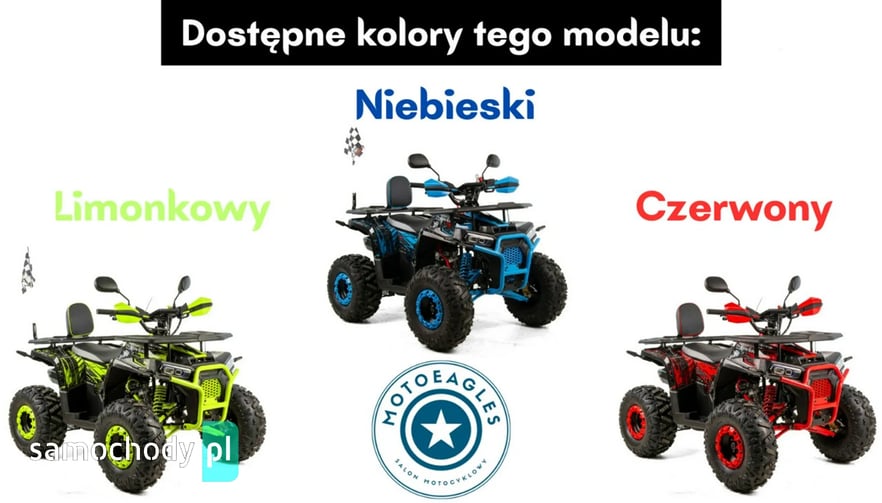 Quad wyposażono w elektryczny rozrusznik (E-Start), który zapewnia szybkie i bezproblemowe uruchamianie, a automatyczna/półautomatyczna skrzynia biegów (1 bieg + wsteczny/3 biegi + wsteczny) sprawia, że obsługa jest maksymalnie prosta — bez konieczności manualnego zmieniania przełożeń.