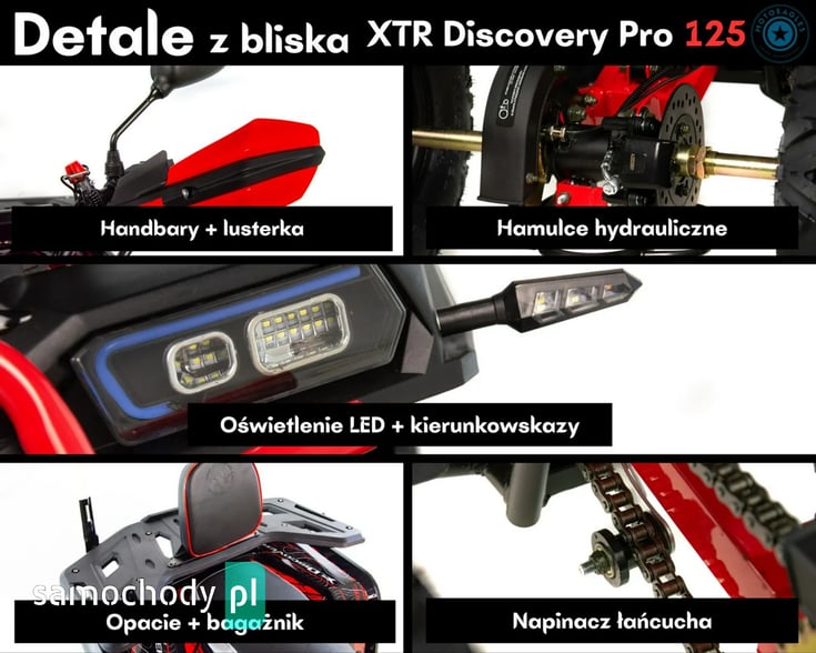 XTR Discovery 125 Pro to quad, który daje stabilną i komfortową jazdę w terenie, jest łatwy w obsłudze i oferuje dobry zestaw wyposażenia — gotowy do działania od pierwszych metrów.