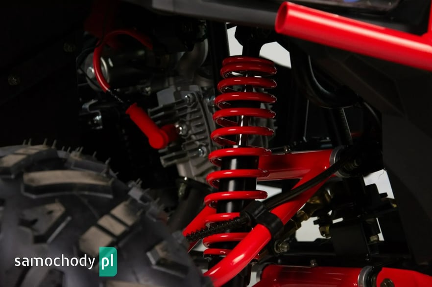 Quad posiada hydrauliczne hamulce tarczowe z przodu i tyłu, które gwarantują skuteczne i przewidywalne hamowanie, co ma szczególne znaczenie przy dynamicznej jeździe. Zawieszenie zostało zaprojektowane tak, aby tłumić nierówności terenu i poprawiać komfort jazdy.