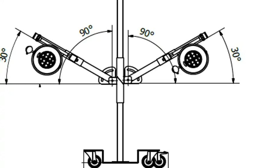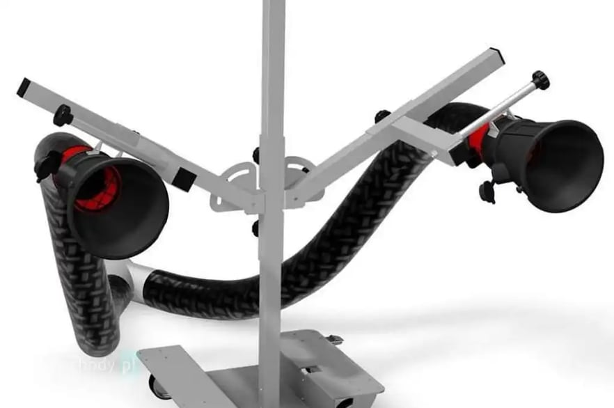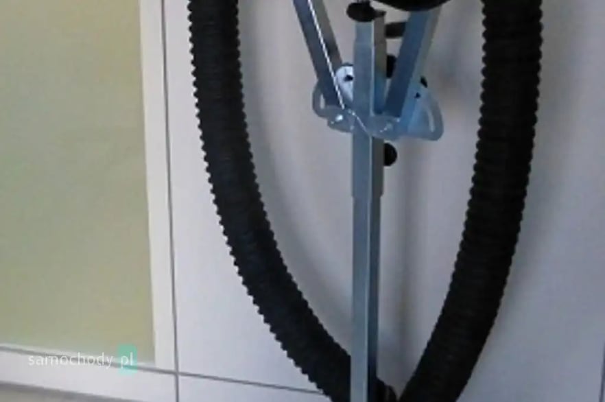 Wózek z zestawem na podwójne orurowanie „Y” umożliwia dowolne rozmieszczenie ssawek odciągu z tyłu pojazdu (samochodu lub motocykla), gwarantujące odpowiedni odessanie spalin bez bezpośredniego podłączenia do rur wydechowych.