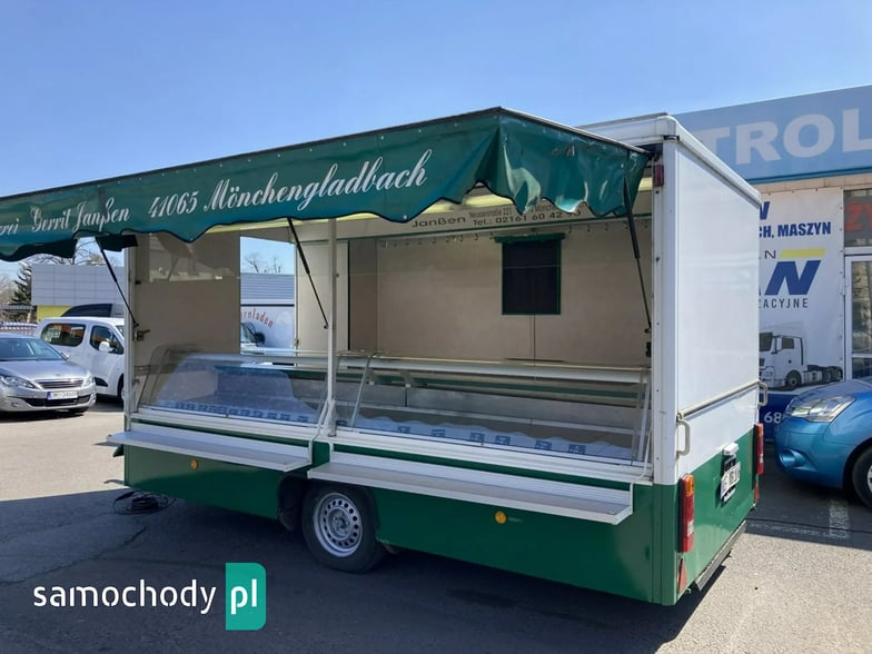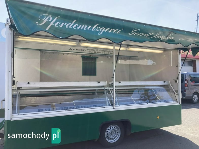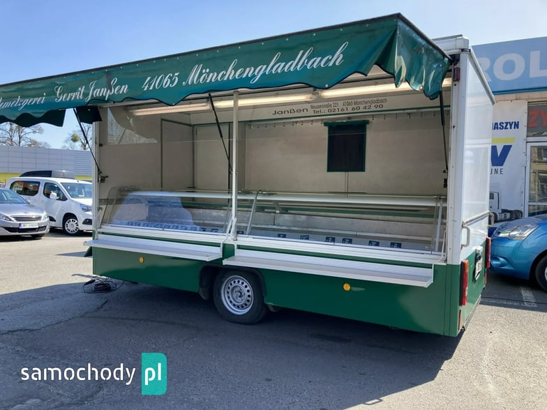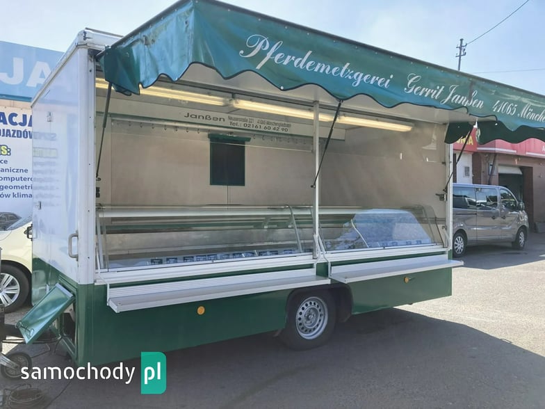Przyczepa Gastronomiczna 1997 Borco-Hohns do sprzedaży wędlin serów oraz innej gastronomi,bok otwierany, Lada chłodnicza 4 metrów,pod ladą ,agregat chłodniczy,regały haki,stojak na papier,kącik socjalno sanitarny,woda ciepła i zimna zlewozmywak dwu komorowy,oświetlenie,DMC 1700 kg,waga 1380 kg,Faktura,Stan Dobry,Faktura Vat Marża,W ofercie inne pojazdy.